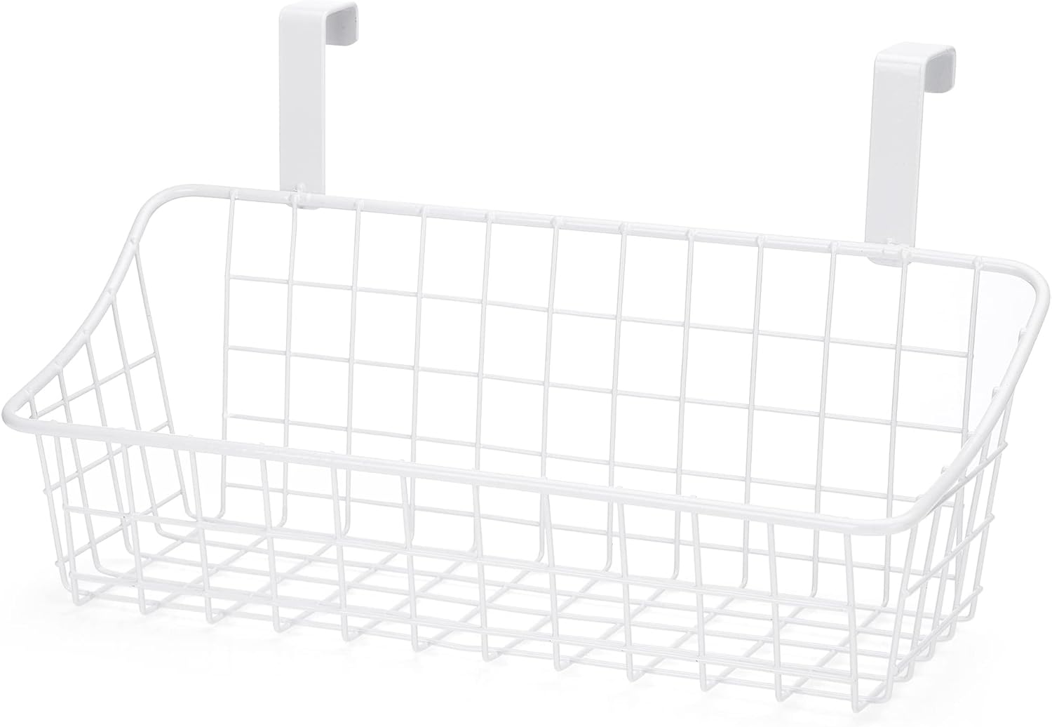 LeleCAT White Basket with hook Grid Storage Basket, Hang it behind a door or on a railing,Over the Cabinet Door,1 Pack