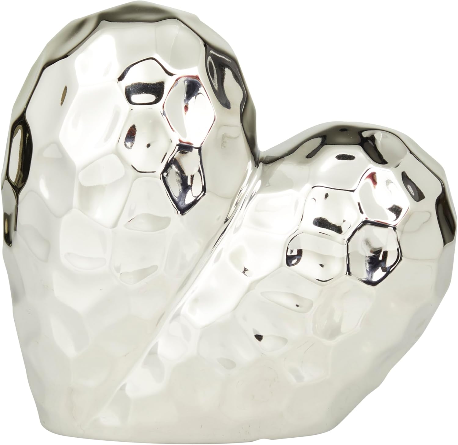 - SILVER HOME DECOR FIGURINE: This ravishing porcelain heart decor features a polished metallic silver finish