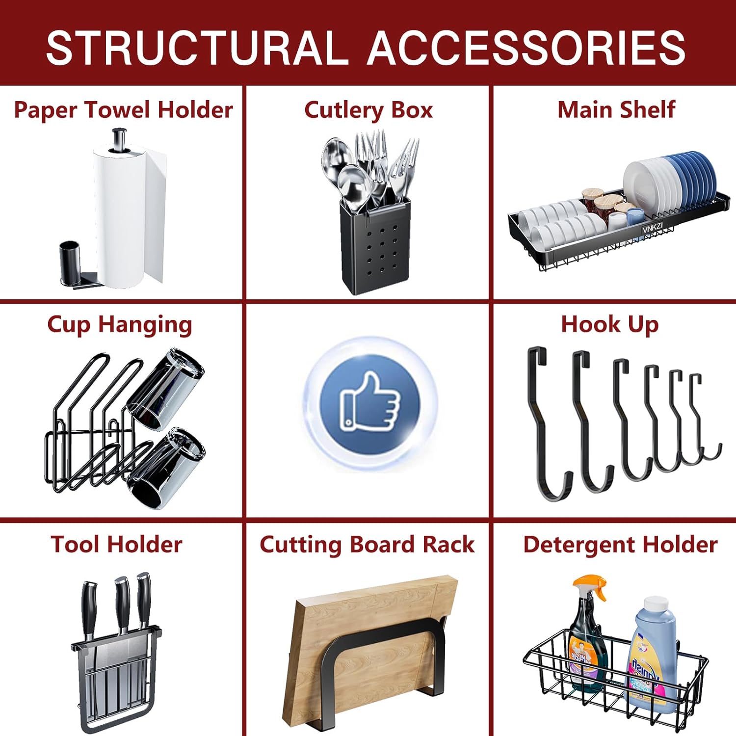 - FIND THE RIGHT DISH RACK FOR YOU: please carefully measure 3 numerical values: The width of your kitchen sink, the height of the faucet and the height between the cabinet bottom to the countertop before buying. VNKZI provide lifetime after-sales service for this kitchen rack.
