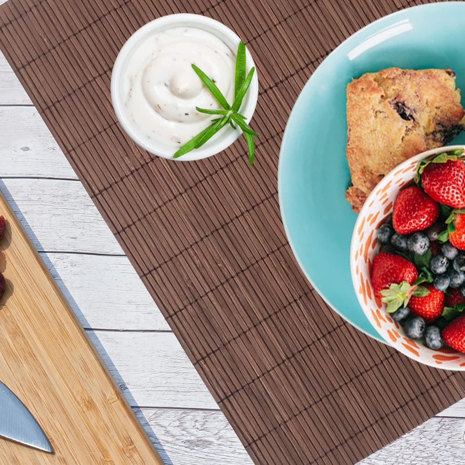 ANDSTAR Set of 12 Pcs Bamboo Placemats Natural Anti-Slip Bamboo Placemats Washable Heat-Resistant Table Mats for Dining Room and Kitchen(Chocolate)