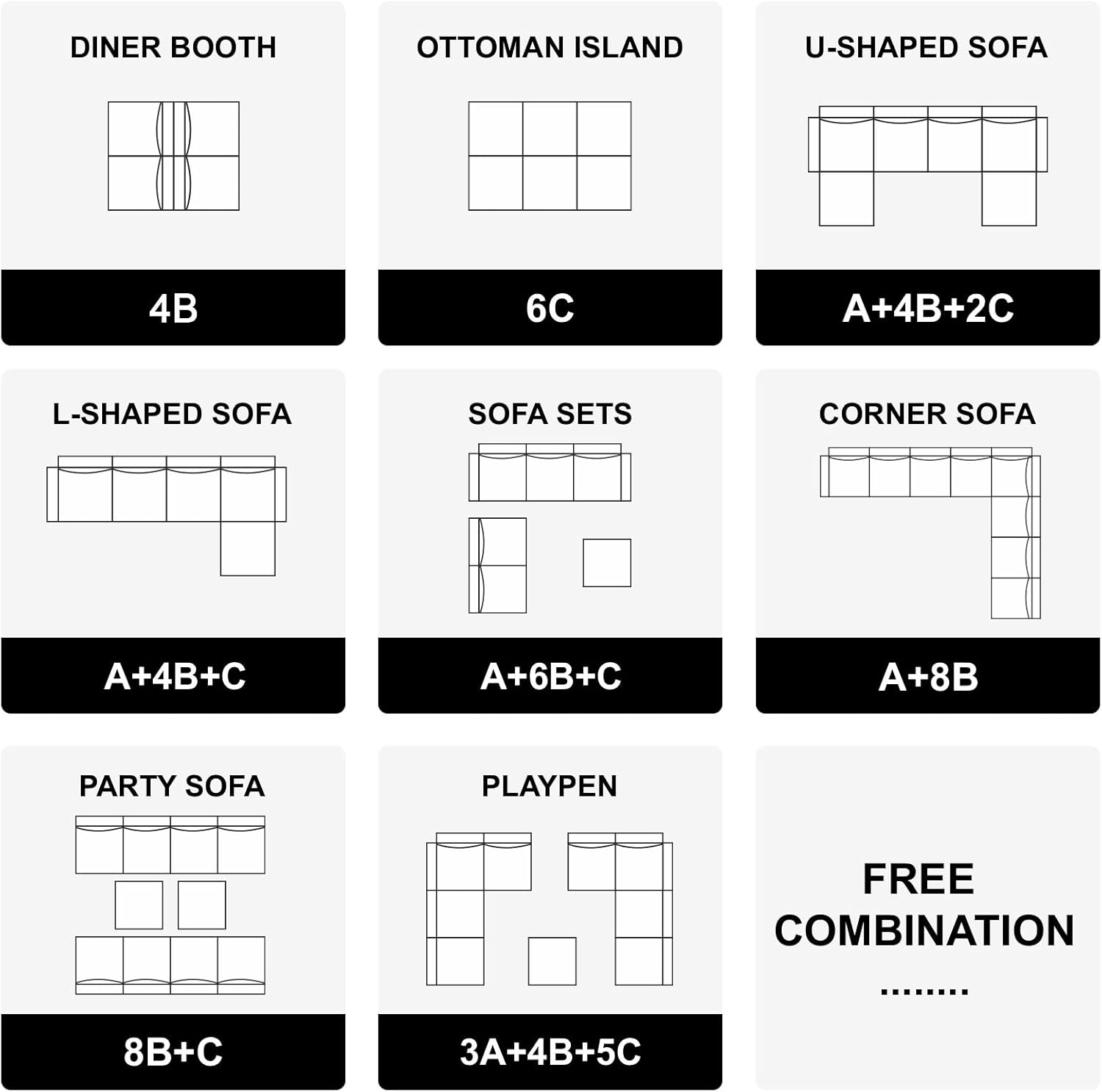 - Movable Seat: The seat of the modular sectional sofa is movable, which means the sofa can be convertible into a sofa with chaises even beds. You can place the ottoman to anywhere you need. It is convenient for you to change the layout of your room.