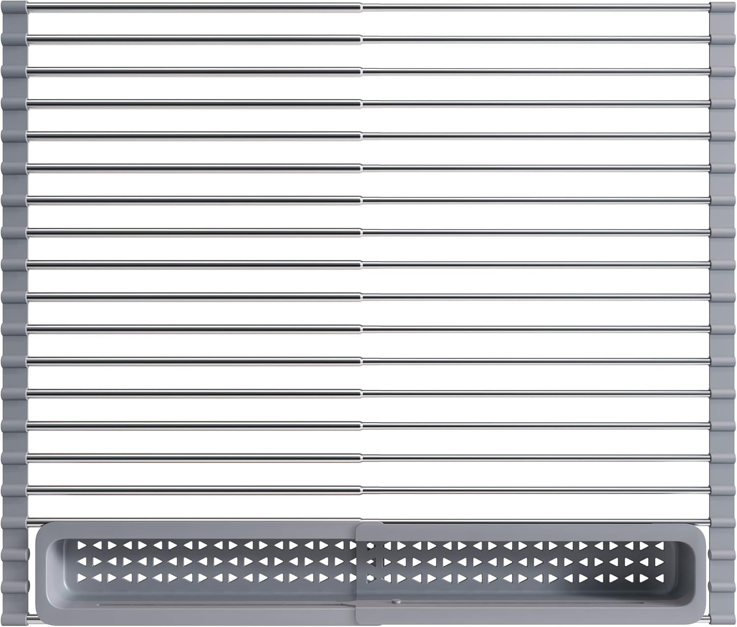 - Space Saving & Easy to Store: This expandable dish drying rack is using on the sink, which doesn't take up your usual counter space, and the water will drip directly into the sink. The drying rack for kitchen sink can easily rolled up for storage when it is not in use, leaving the sinks and kitchen counter keep neat and organized. This over the sin drying rack will be the best parter in the kitchen organization and storage!