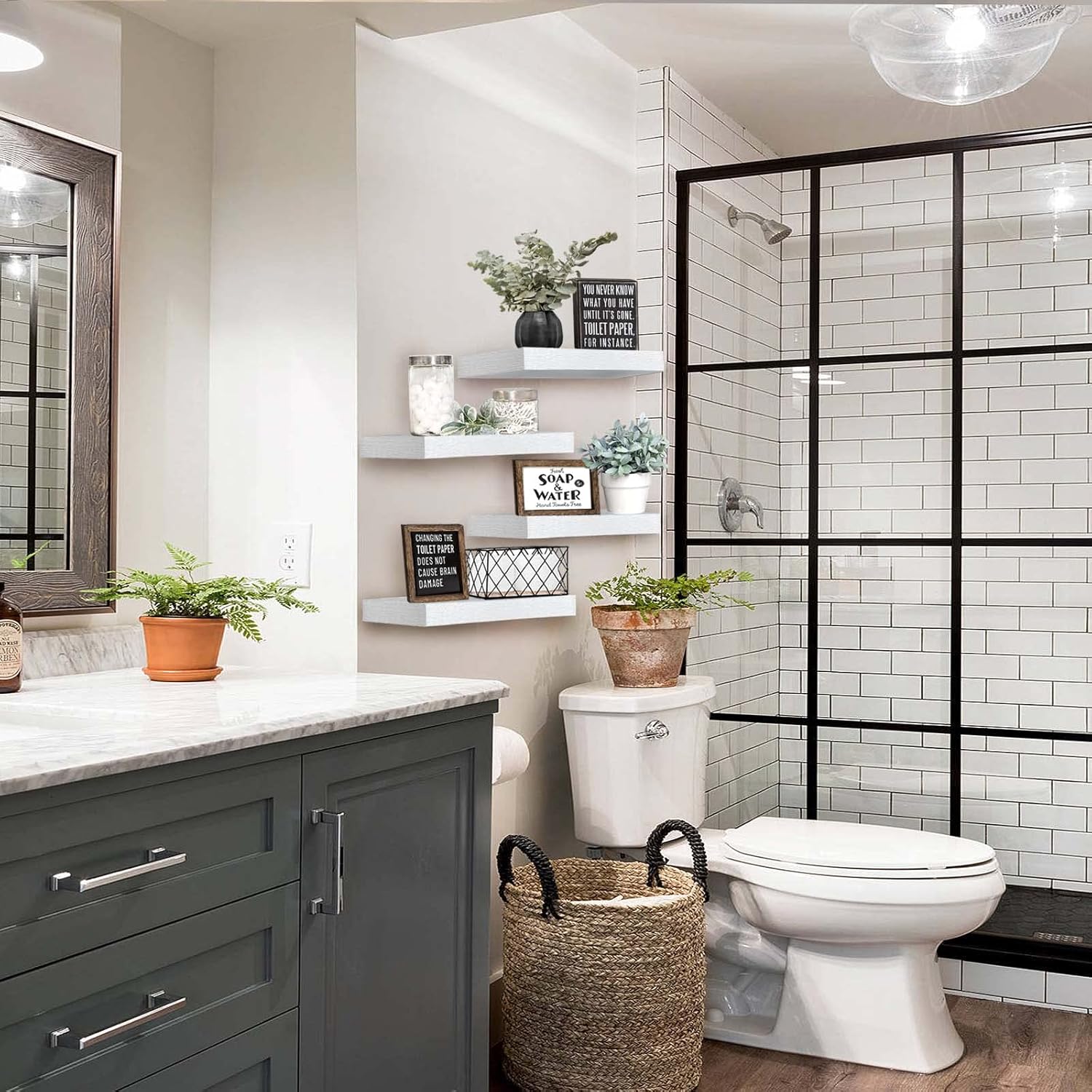 - Invisible Bracket: Farmhouse vibe fill in empty wall space above a desk, fireplace, entryway, vanity, between windows. Put succulent plants, collectibles small items