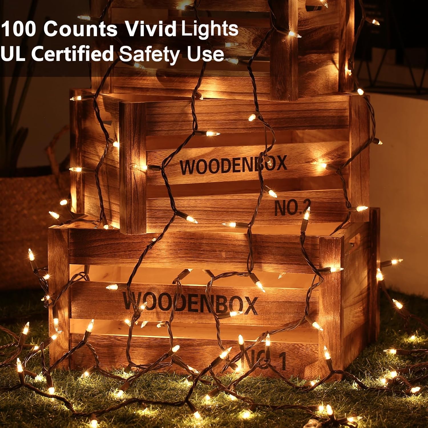 - Brown Wire Christmas Lights: Each string of 100 counts transparent mini incandescent bulbs on durable brown wires, 1.2V per bulb, 0.41W per bulb, with built-in fuse to ensure the lights string is safe to use, plus 2 replacement bulbs and 2 fuses, ideal for a variety of holiday lighting decorations.
