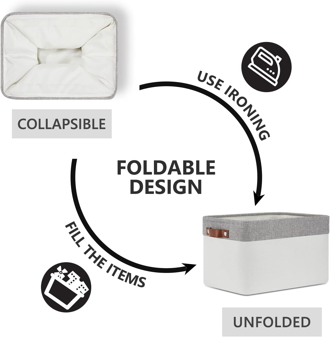 DULLEMELO Storage Baskets for Organizing, Shelves,Bedroom, Decorative Storage Bins with Leather Handles, Fabric Storage Basket for Office, Toys(3-Pack Medium-15 inch X 11 inch X 9.5 inch , Grey&White)
