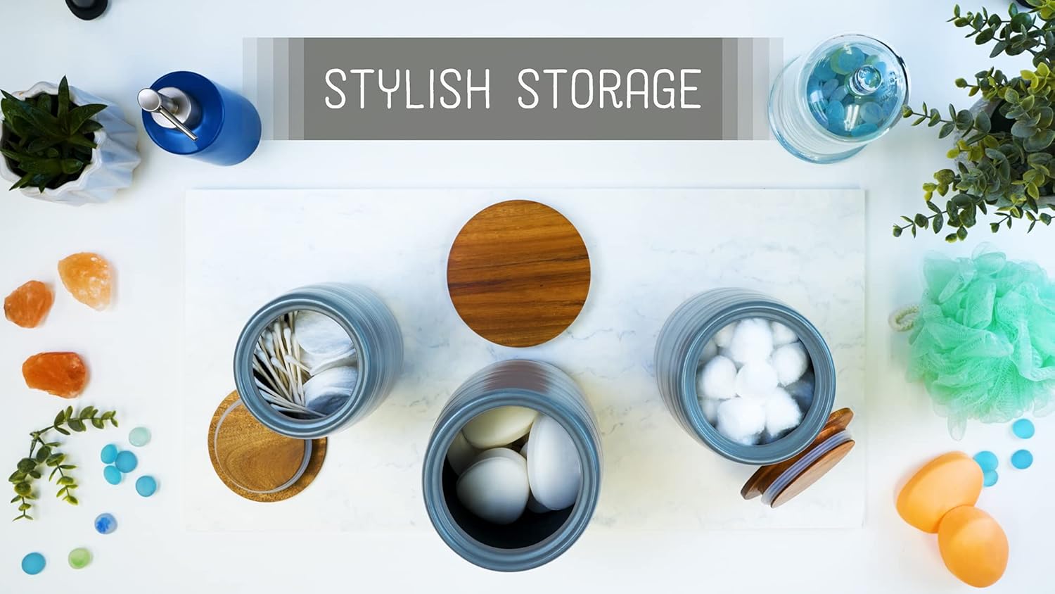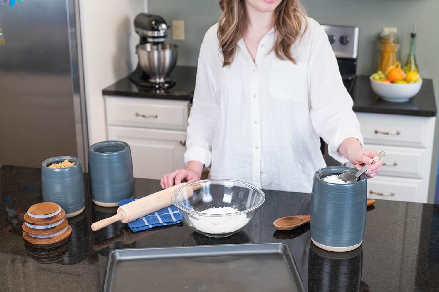 - THREE (3) PIECE SET - Includes three kitchen canisters of various sizes; Each includes a wooden lid with sealing rubber gasket around the rim