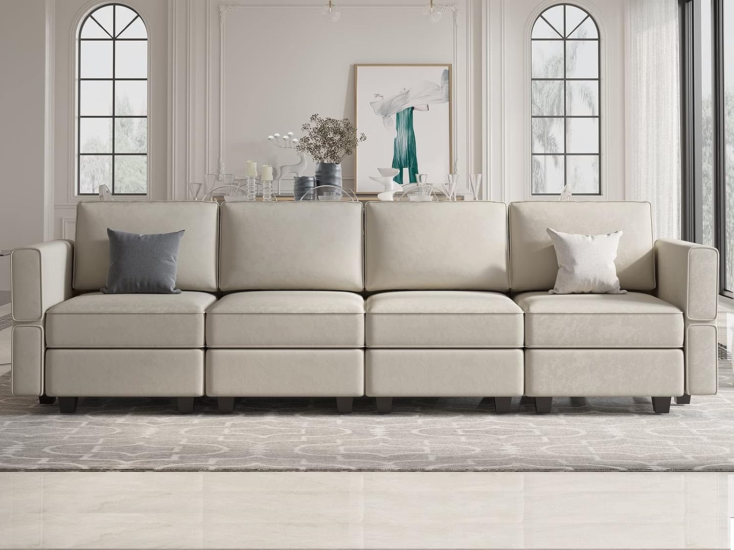 - Combination of comfort and artistry: The modular sectional sofa appeals to minimalist elegance with a crisp design and broad double lines accented with French piping details and velvet fabric. Dense foam padding and a pocket coil spring system in the cushions offer a luxe seating experience to you.