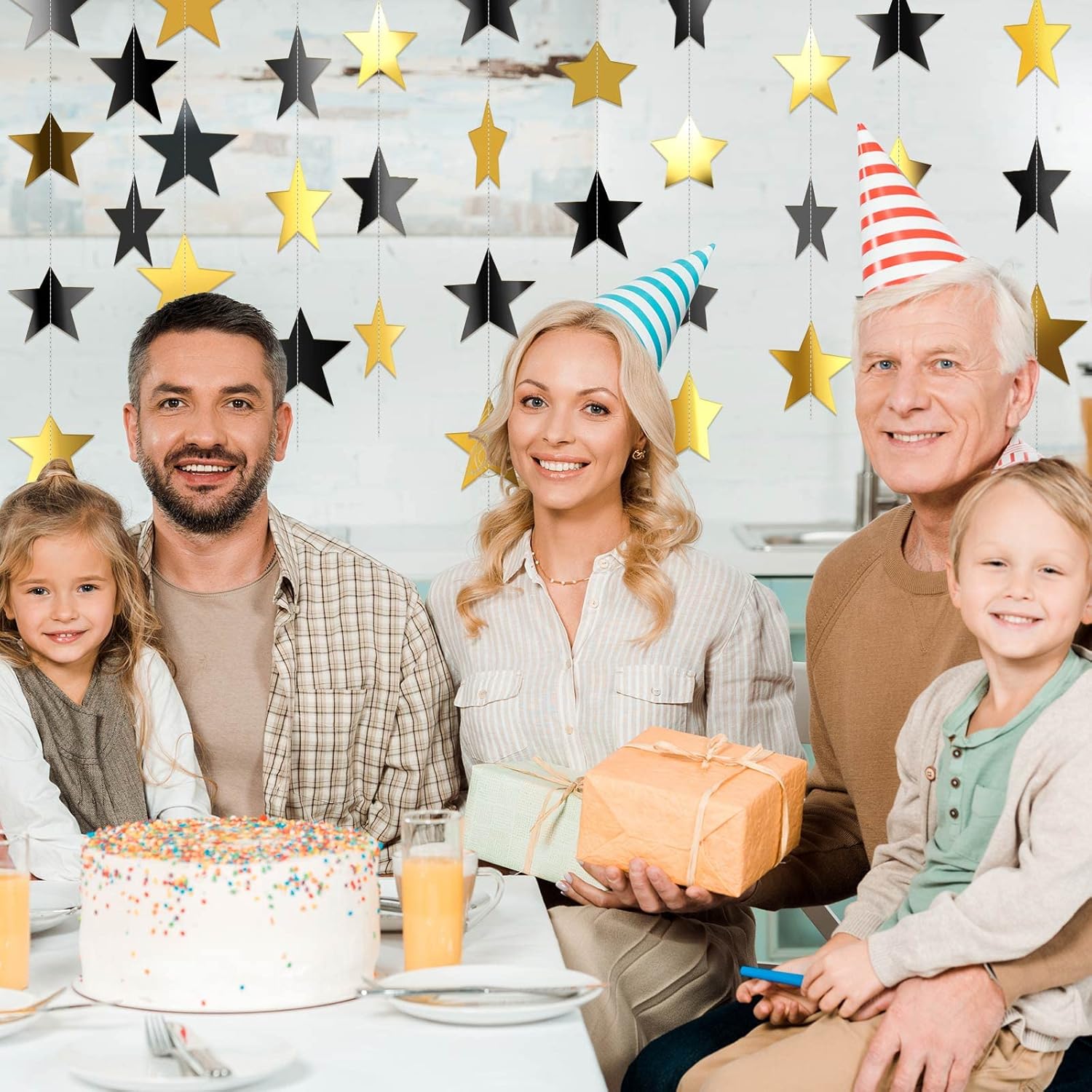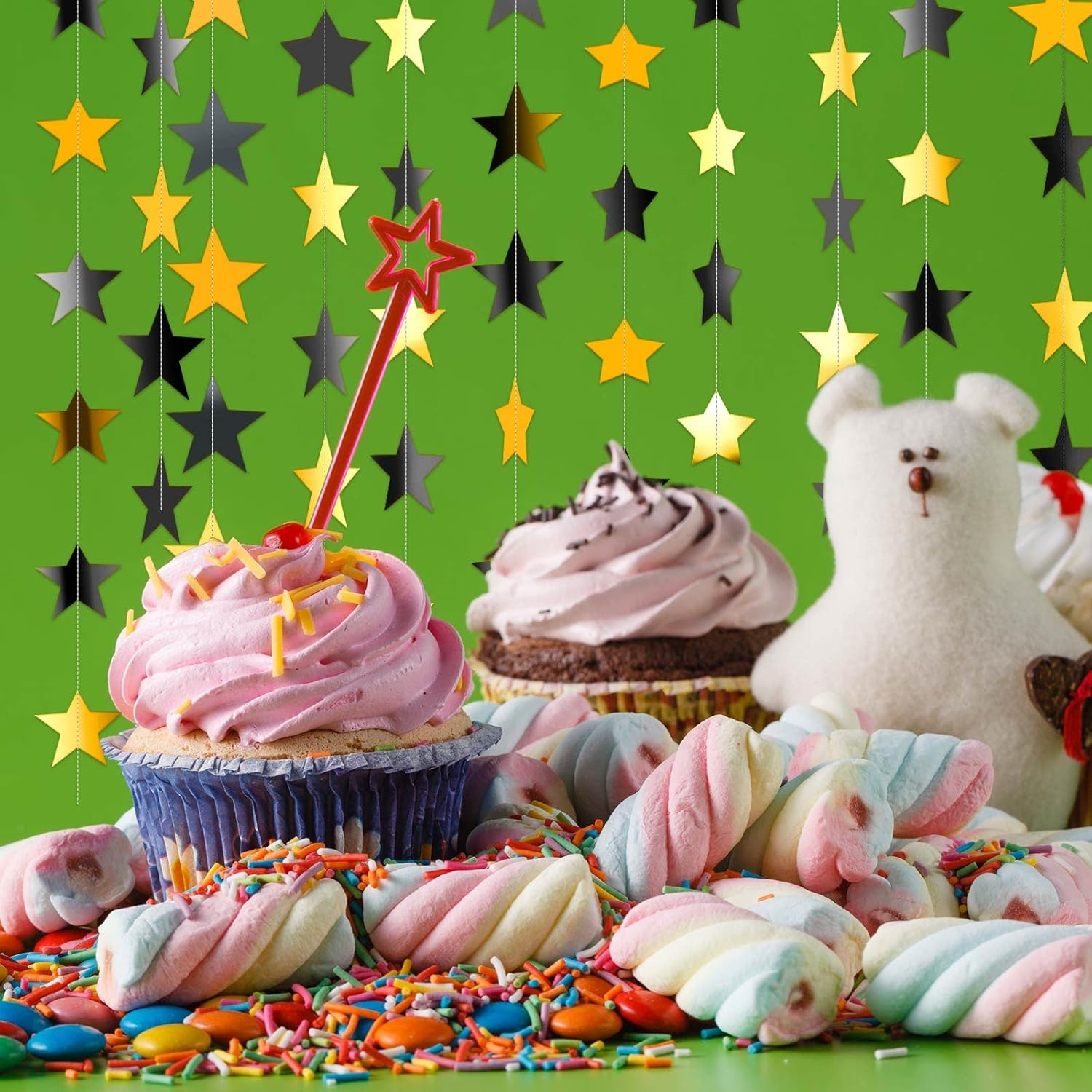 Patelai Glitter Star Garland Banner Decor 130 Feet Star Hanging Bunting Banner Twinkle Backdrop for Homecoming Classroom Wedding Birthday Halloween Christmas Party Supplies(Black, Gold)