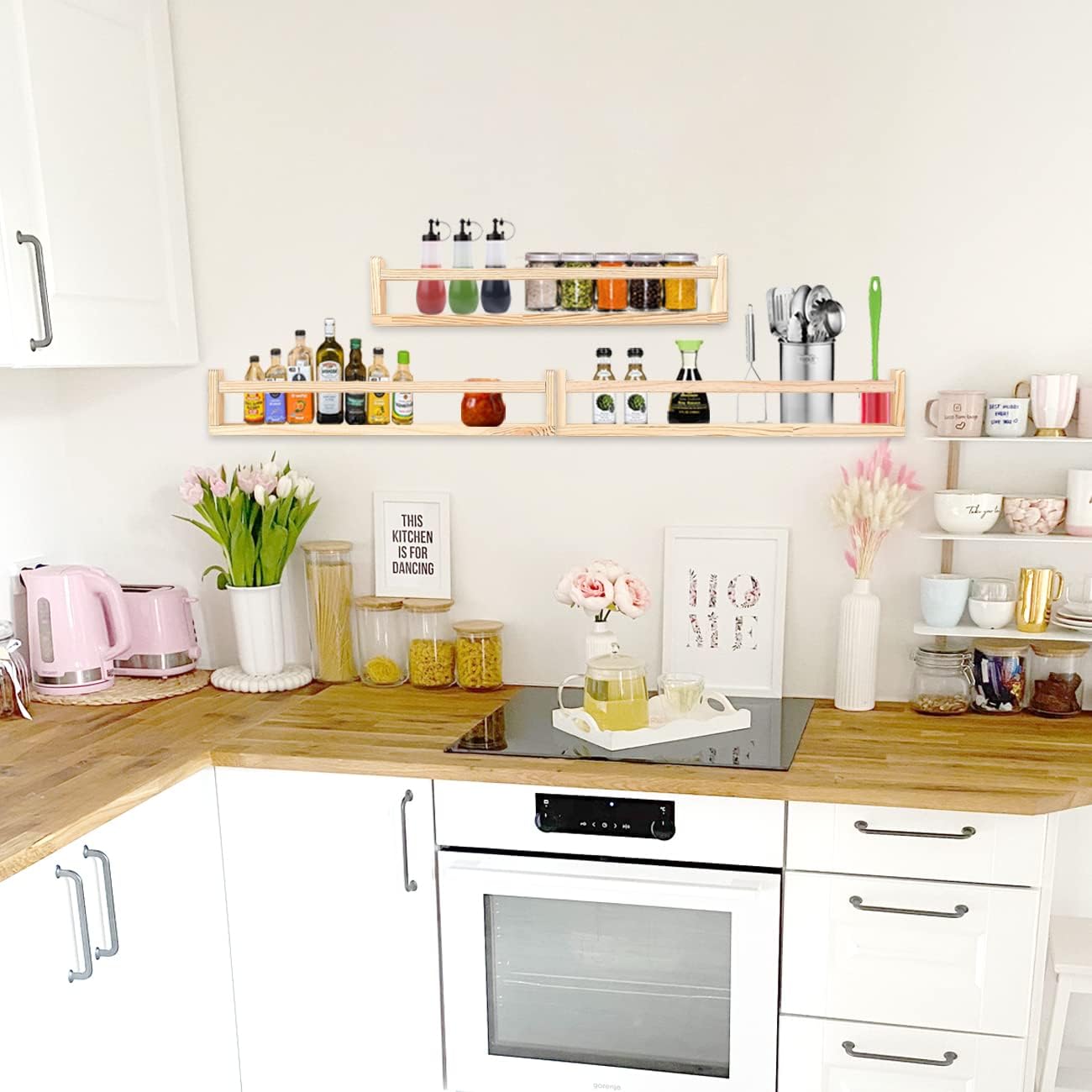- Multipurpose Wall Bookshelves: Our 24in Each set comes with 3 wall-mounted children's wood nursery bookshelves can easily be used as bathroom decor,wall spice rack, essential oil rack, trophy shelf,etc spice racks for bathroom storage of cosmetics, toothbrushes or other toiletries, or in the art room for paint storage.