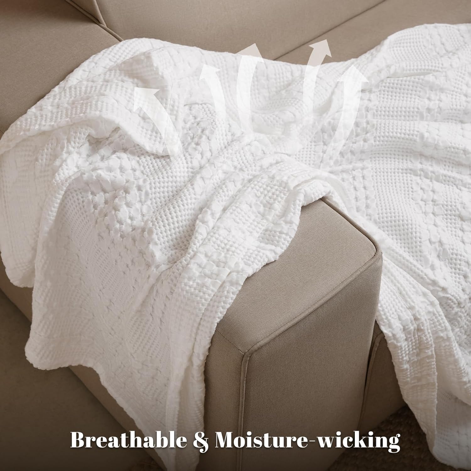 - Exquisite Waffle Weave Design: This classic and stylish waffle design boasts a three-dimensional, puffy, and elegant appearance, crafted with precision in every stitch, showcasing exquisite woven craftsmanship. The special waffle fabric promotes air circulation, temperature regulation, and moisture absorption for ultimate comfort. In addition, this stylish and sophisticated blanket, adding a touch of elegance to any room.