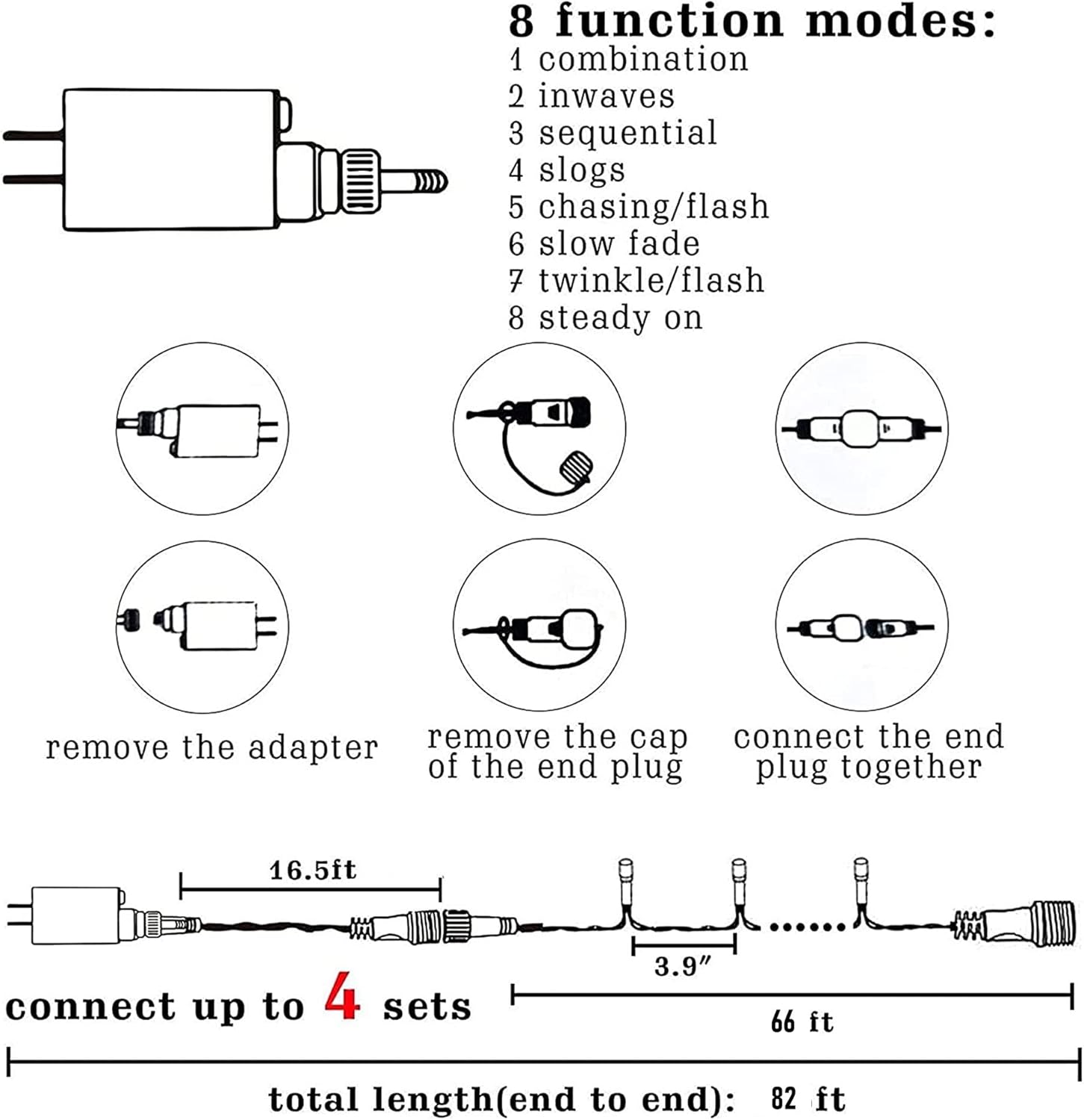 - 8 Lighting Modes: 8 Modes for you to choose: combination, in waves, sequential, slogs, chasing/flash, slow fade, twinkle/flash, and steady on. You can select your favorite flash mode by pressing the mode button on the plug.