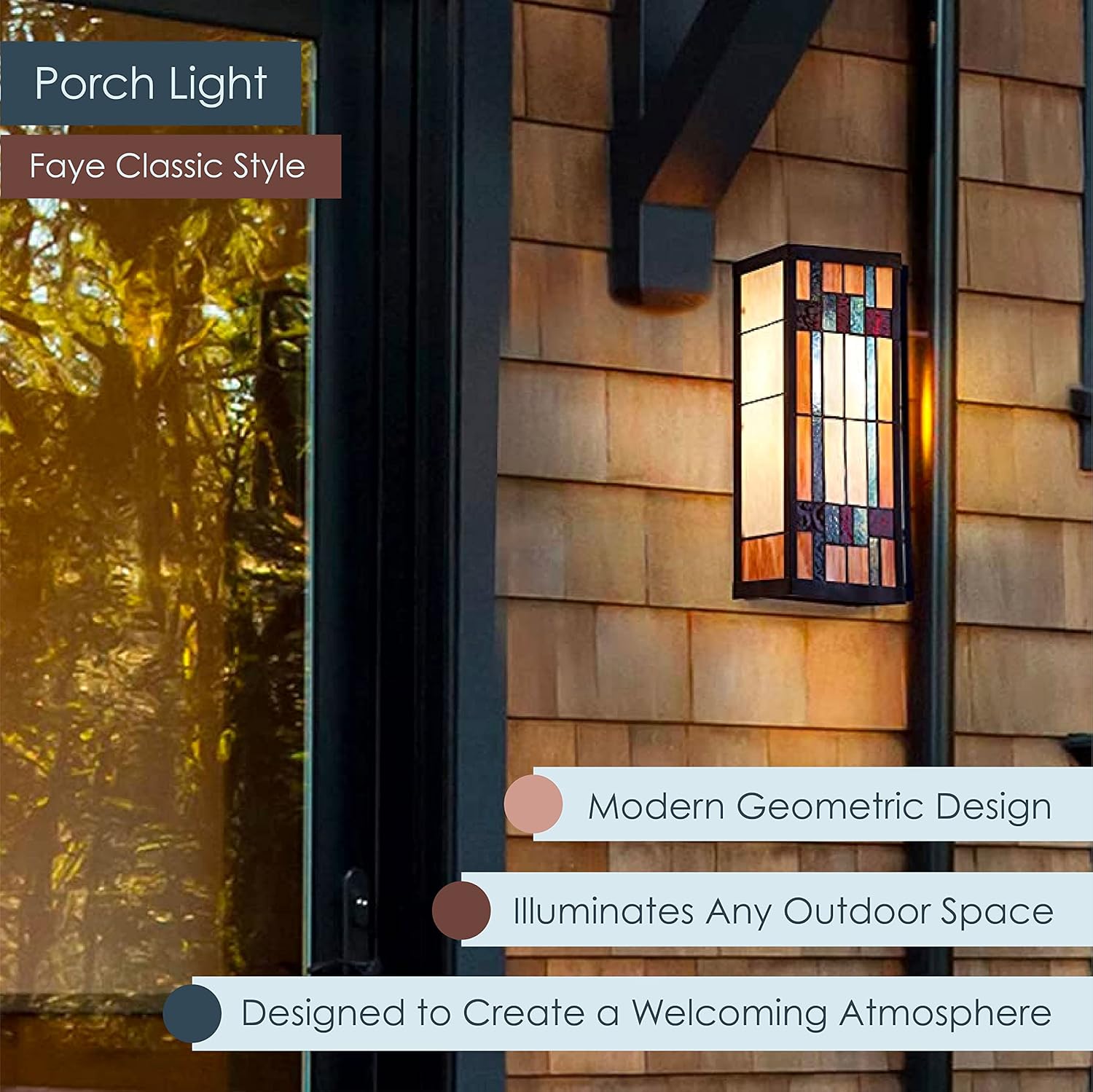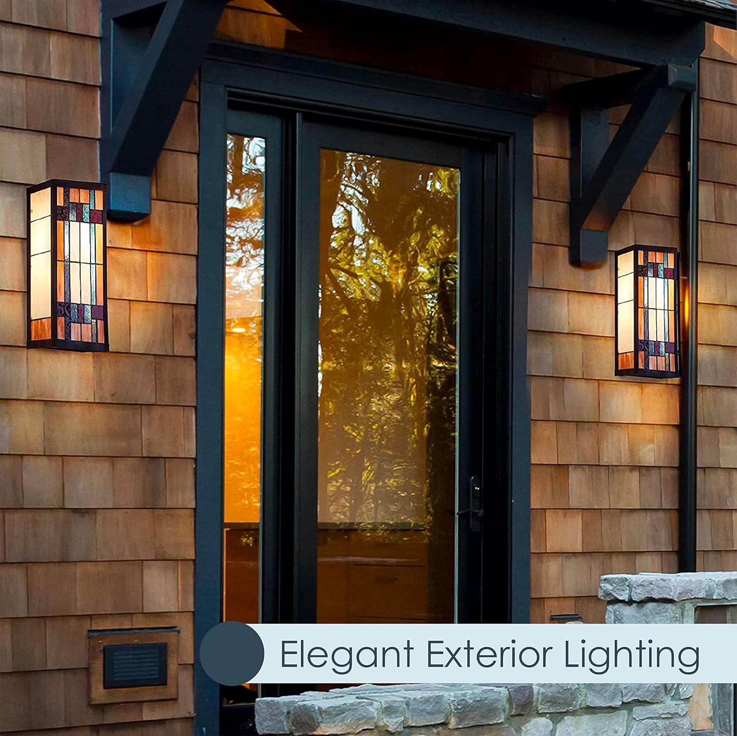 - OUTDOOR LIGHTING: Bring a modern look to the exterior of your house with one of our decorative light fixtures. This stained-glass wall lighting emits a subtle, warm glow and requires one E26 100W incandescent bulb or one 9W LED bulb, not included.