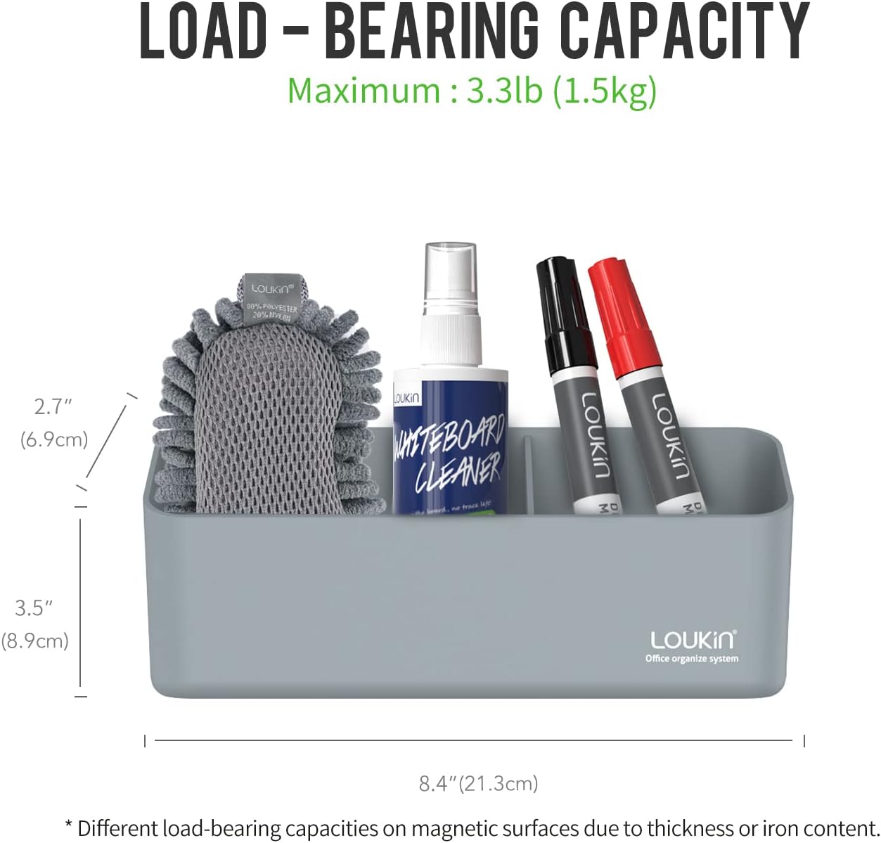 - SUPER LOAD BEARING: Secure magnetic storage organizer for whiteboards with a maximum loadbearing of capacity 3.3 lb (1.5 kg).