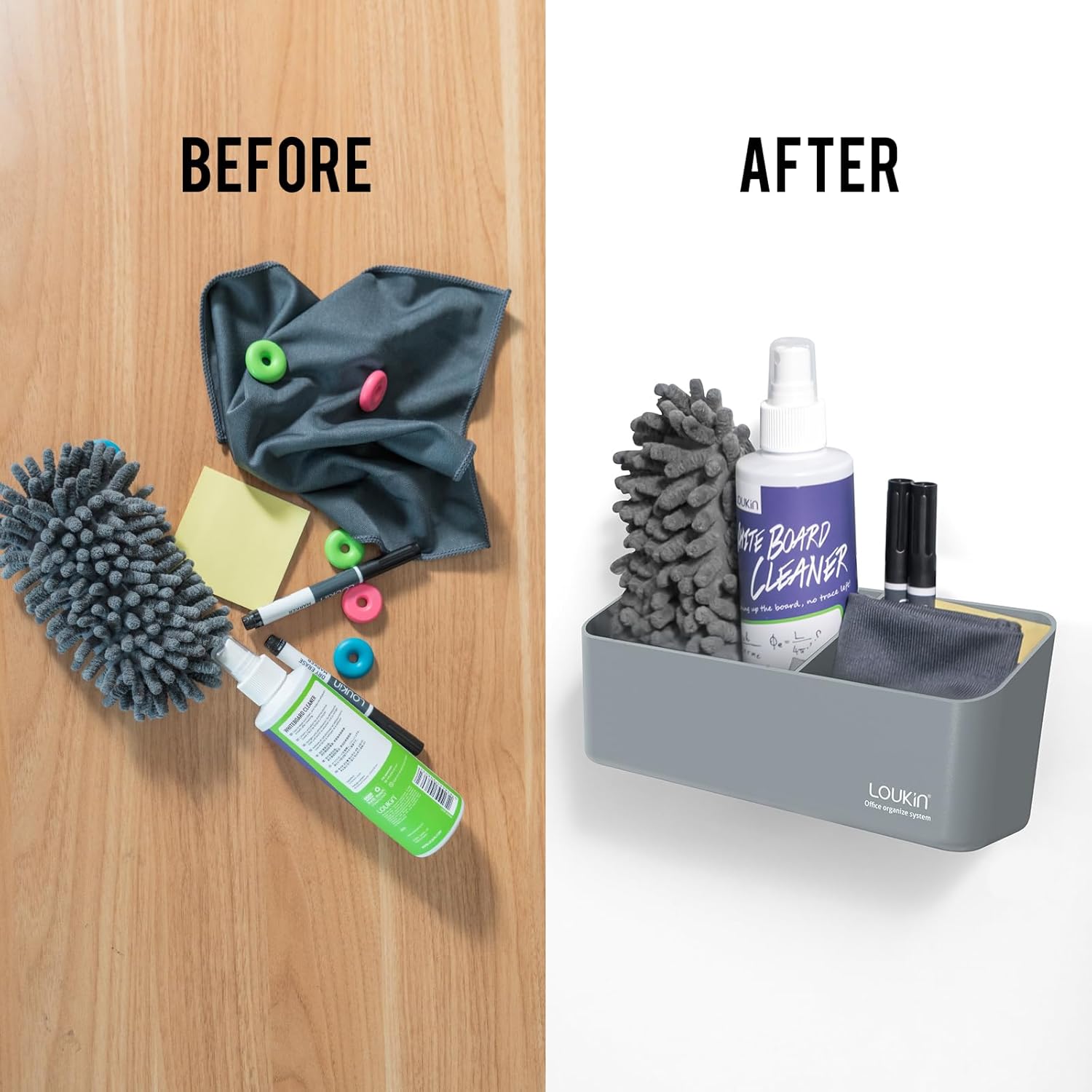 loukin Magnetic and Adhesive Marker Holder, Dry Erase Accessory Tray, Magnetic Storage Organizer for Whiteboard, Glass or Refrigerators (Grey)
