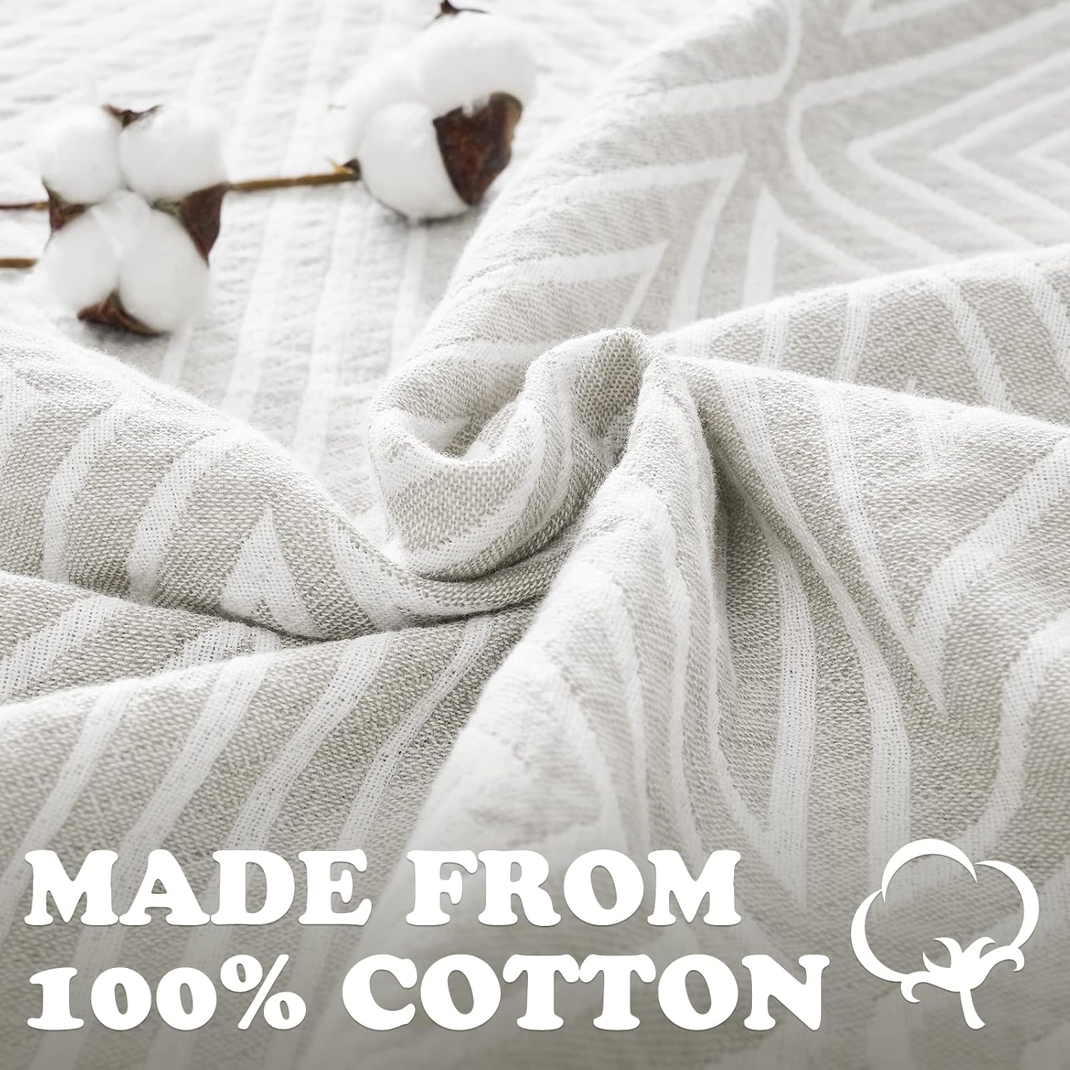 jinchan Boho 100% Cotton Blanket Muslin Twin Size 60x80 Inches Lightweight 3-Layer Geometric Triangle Striped Reversible Quilt Throw Soft Breathable Comfy All Seasons for Couch Bed Decor, Light Grey