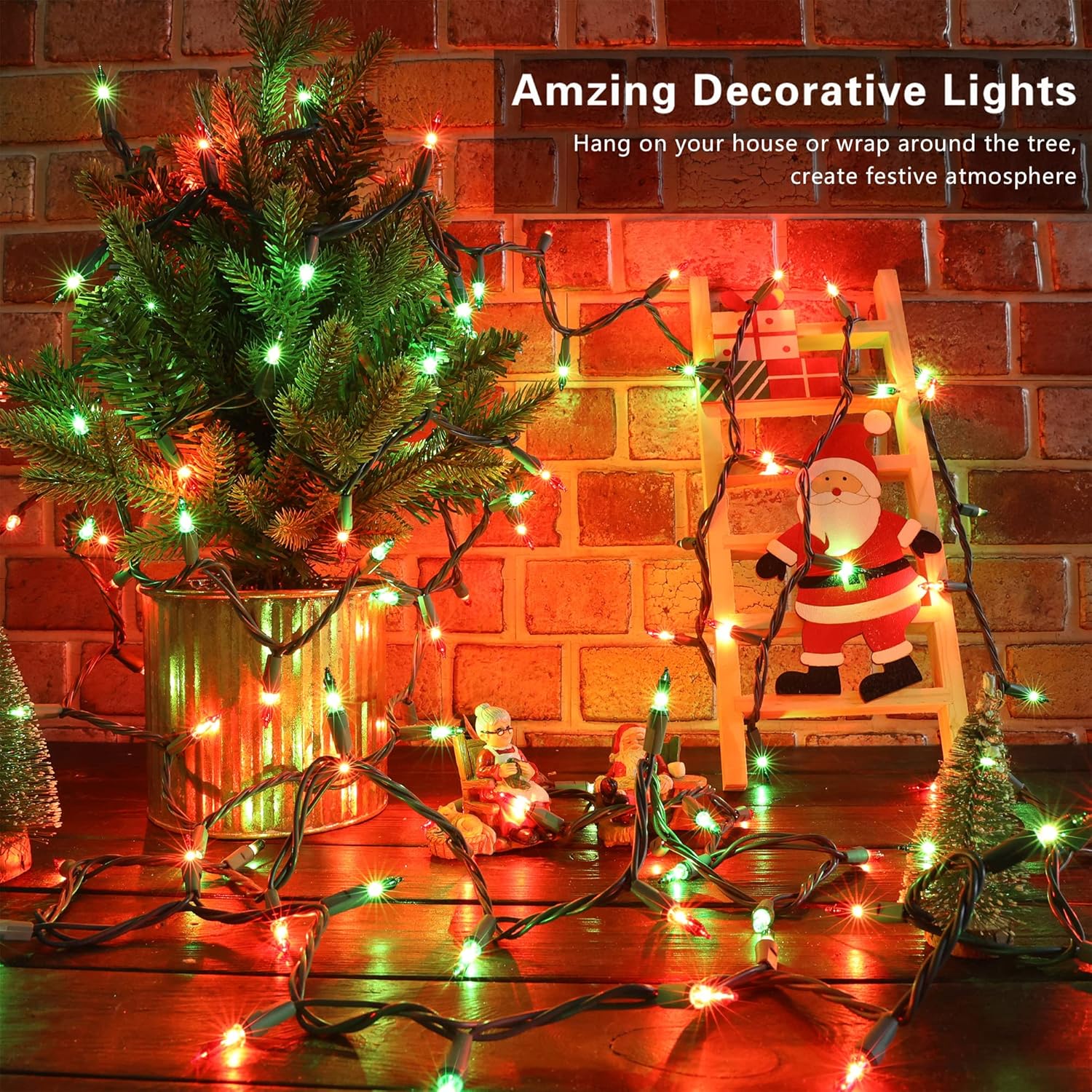 - Red & Green Xmas Lights: Color is red and green, the micro bulb creates a 360º sparkling glowing, super bright with a holiday atmosphere, it would illuminate your Christmas and what you want with beautiful red & greencolor and enough brightness. Eco-friendly corded-electric source, environmental! 100% UL certification, high quality certified products ensure the safety of you and your fam