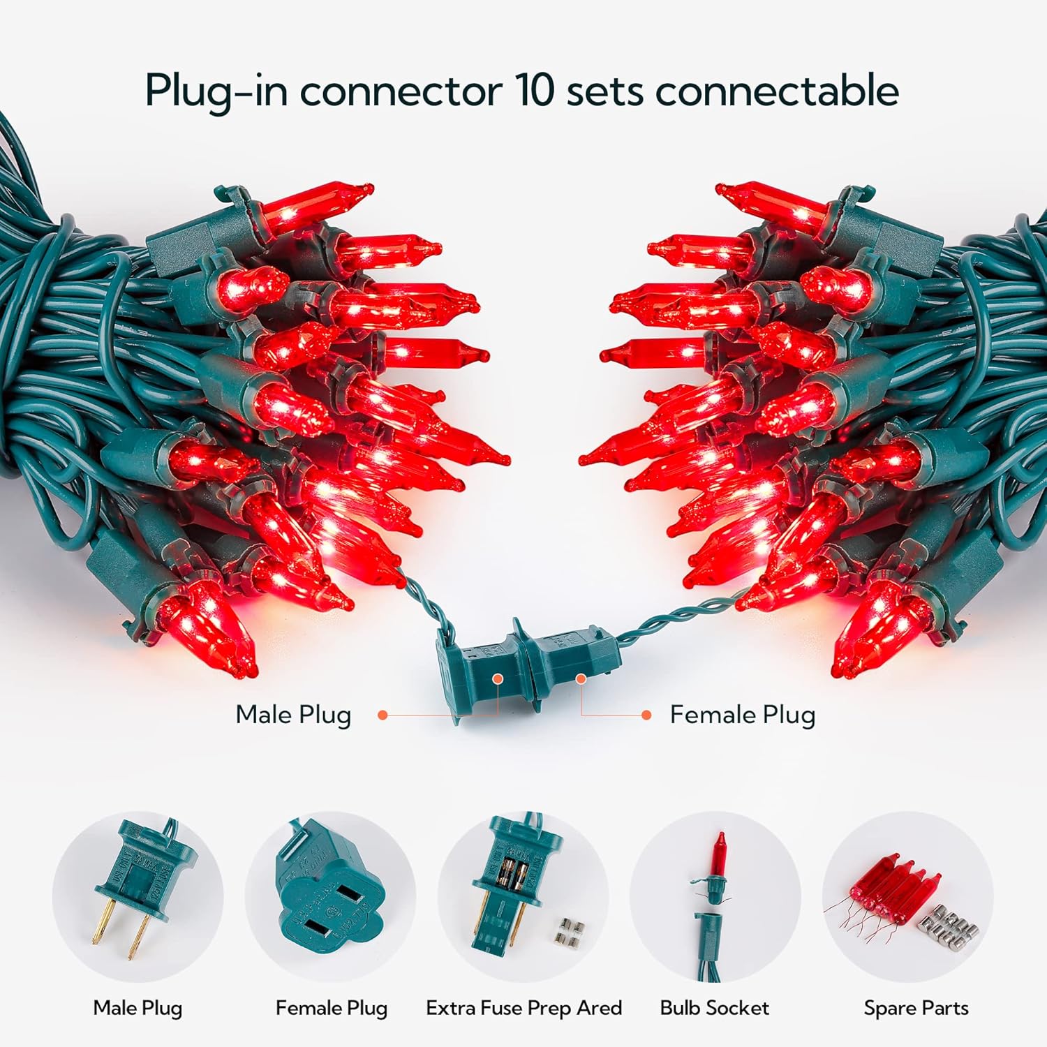 - 💕50 Vibrant Lights with Perfect After Sale :Old-fashion red incandescent Christmas light set, creates a warm and festive atmosphere, surely lights up your house, let your home become a fantastic sight to behold in your neighborhood! With green wire, ideal for a tree, bedroom, patio decorations!If you have any reason you don't enjoy it, just send us a message and we will refund 100% or replace your purchase.