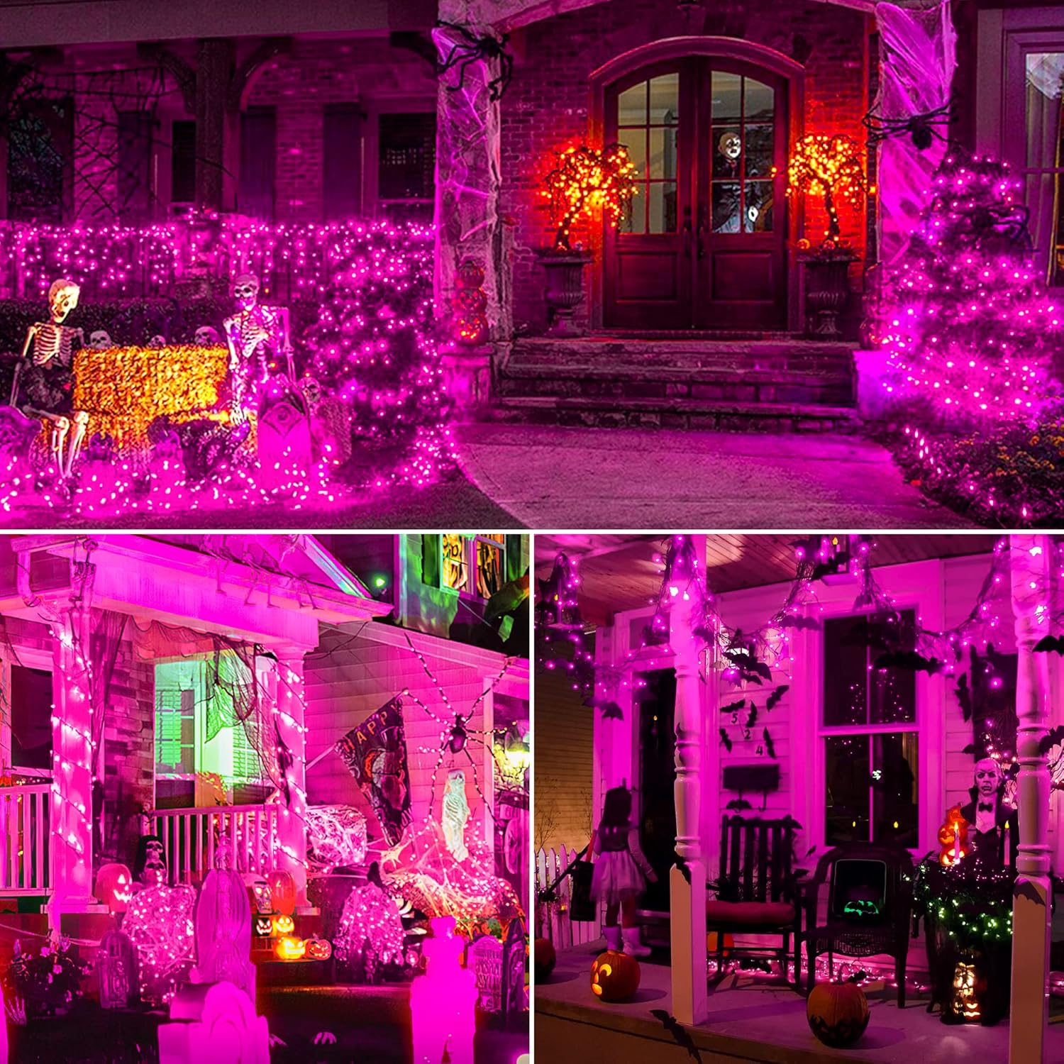 woohaha Outdoor Halloween Lights, 2PACK 13ft 50 Count Incandescent Blubs & Green Wire Mini Lights, 120V High-Voltage Connectable Light String, for Indoor Patio Garden Tree Party Decoration, Purple