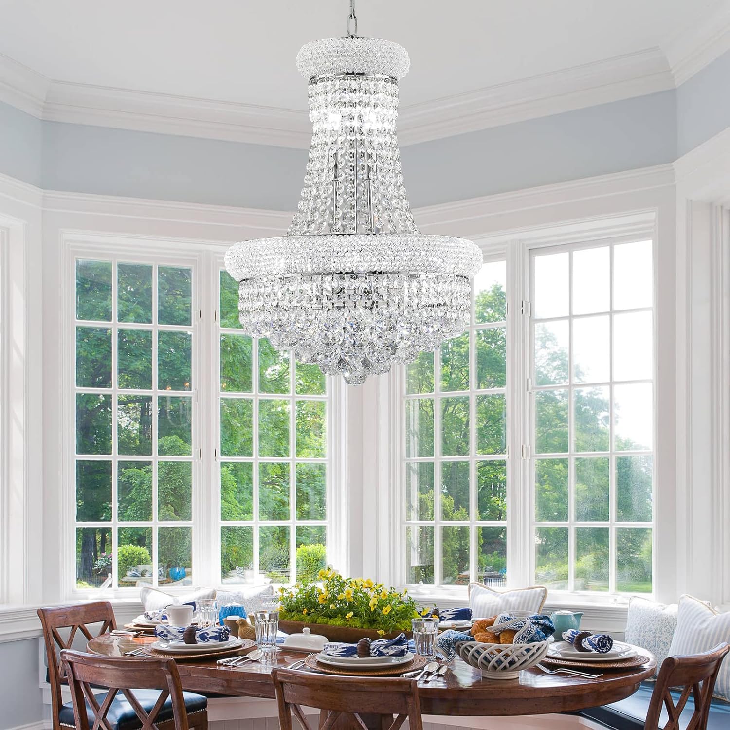 10 - Light Unique Empire Crystal Chandelier for Dining Room Foyer Entryway Living Room Bedroom Chrome Finish