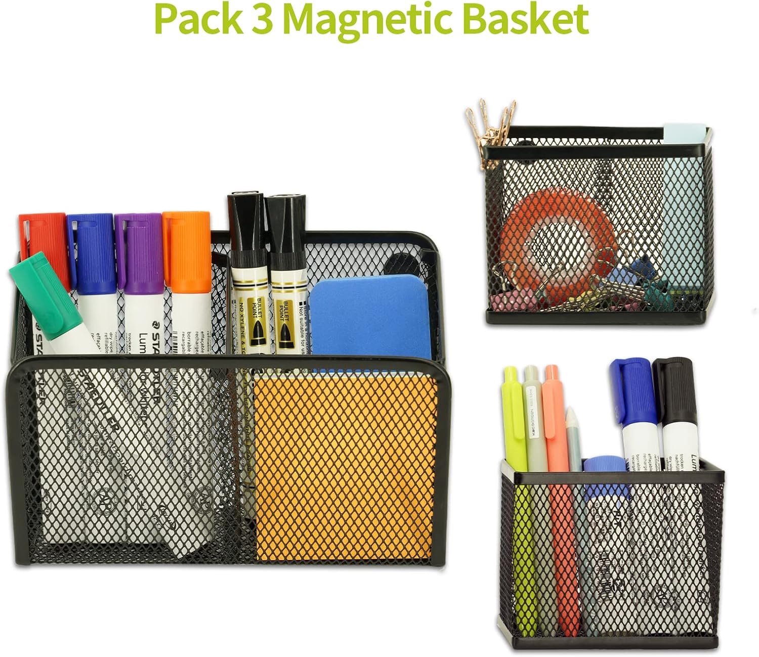 - [Strong Magnets] Heavy-duty magnets on this three-compartment magnetic mesh locker basket help hold it in place no matter where it is. Three useful compartments are included in the large holder to help keep everything organized. It can be secured on a whiteboard, in a locker, or on any other magnetic surface due to nine strong magnets