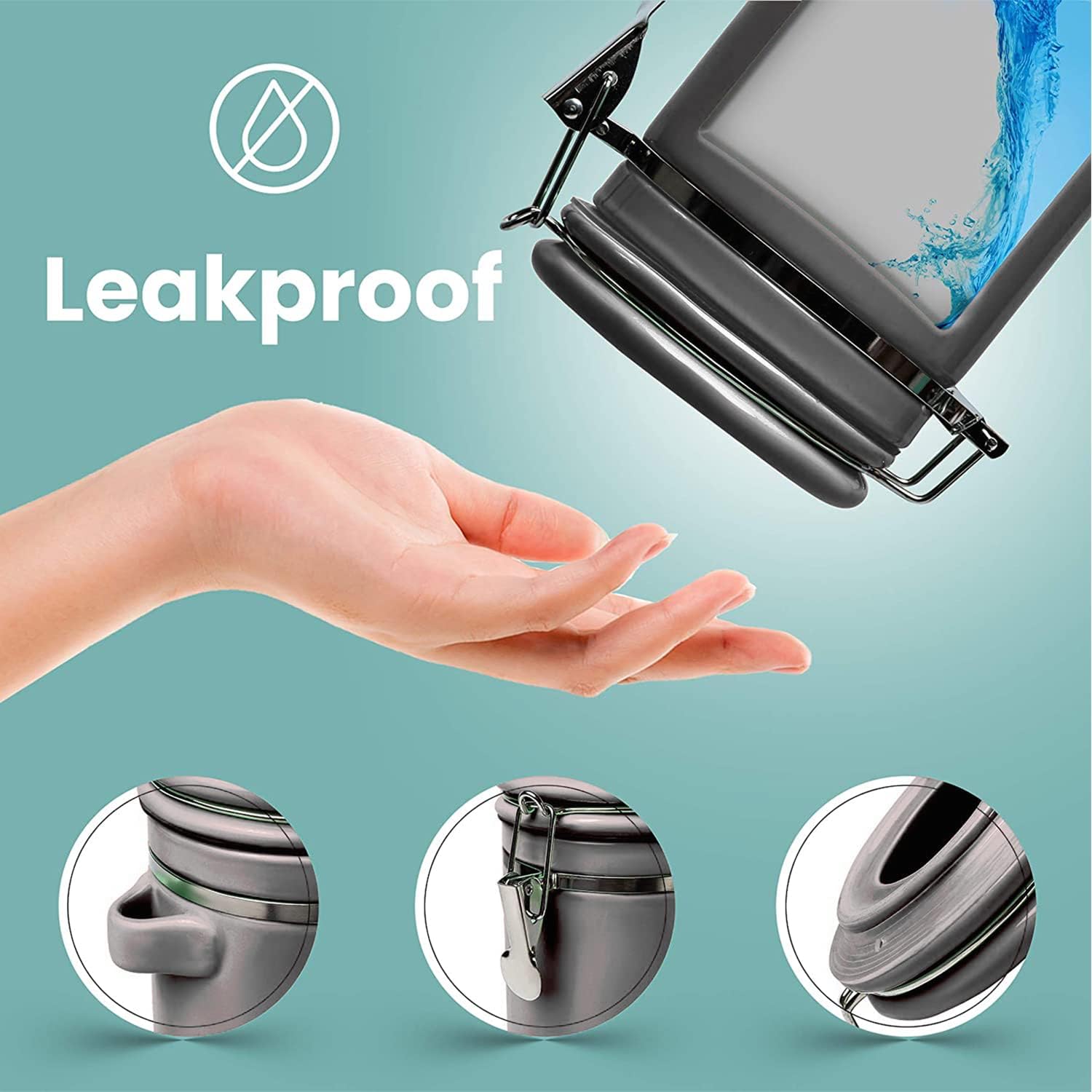 - AIRTIGHT SEAL FOR UNBEATABLE FRESHNESS: Featuring an airtight lid with silicone gaskets and a metal latch for perfect seal, this handy canister set will preserve the flavor of your supplies and keep them fresh and delicious. Perfect for any type of coffee, tea, sugar, flour, salt, candy, spices and so much more. Plus, they are 100% leakproof to prevent any messy spills