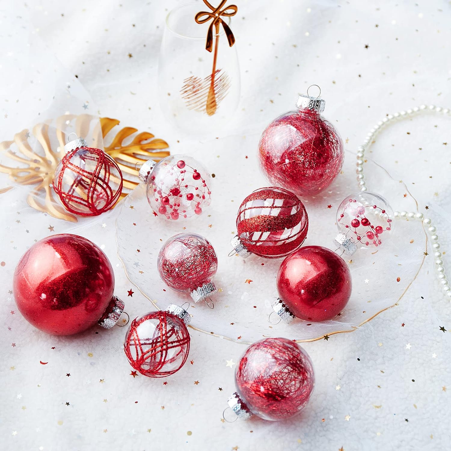 - Red Christmas Ball Ornaments--These 24ct clear Christmas decorations are made of durable and environmentally friendly plastic with excellent shatter resistance. These Christmas balls have shiny decorations and a transparent glaze base, which are perfect for hanging on your Xmas tree and decorating your Home with them,this will become part of your vacation.