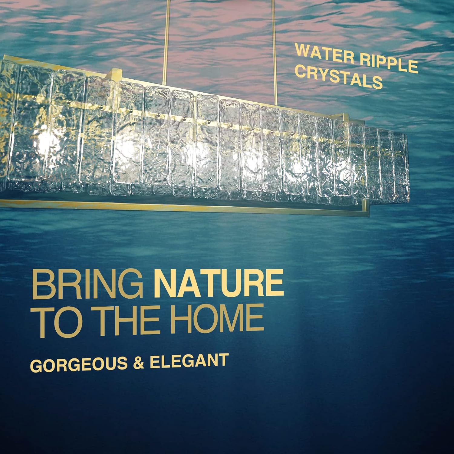 - [BRING NATURE HOME ]: This gorgeous Chandelier with 100% handcrafted water ripple glass. The Nature-inspired accessories can Strengthen the calming power of your home. Each glass is unique, mimicking the calming, restorative ambiance of the outdoors. Gold matt coating metal frame is very friendly to a variety of scenarios.