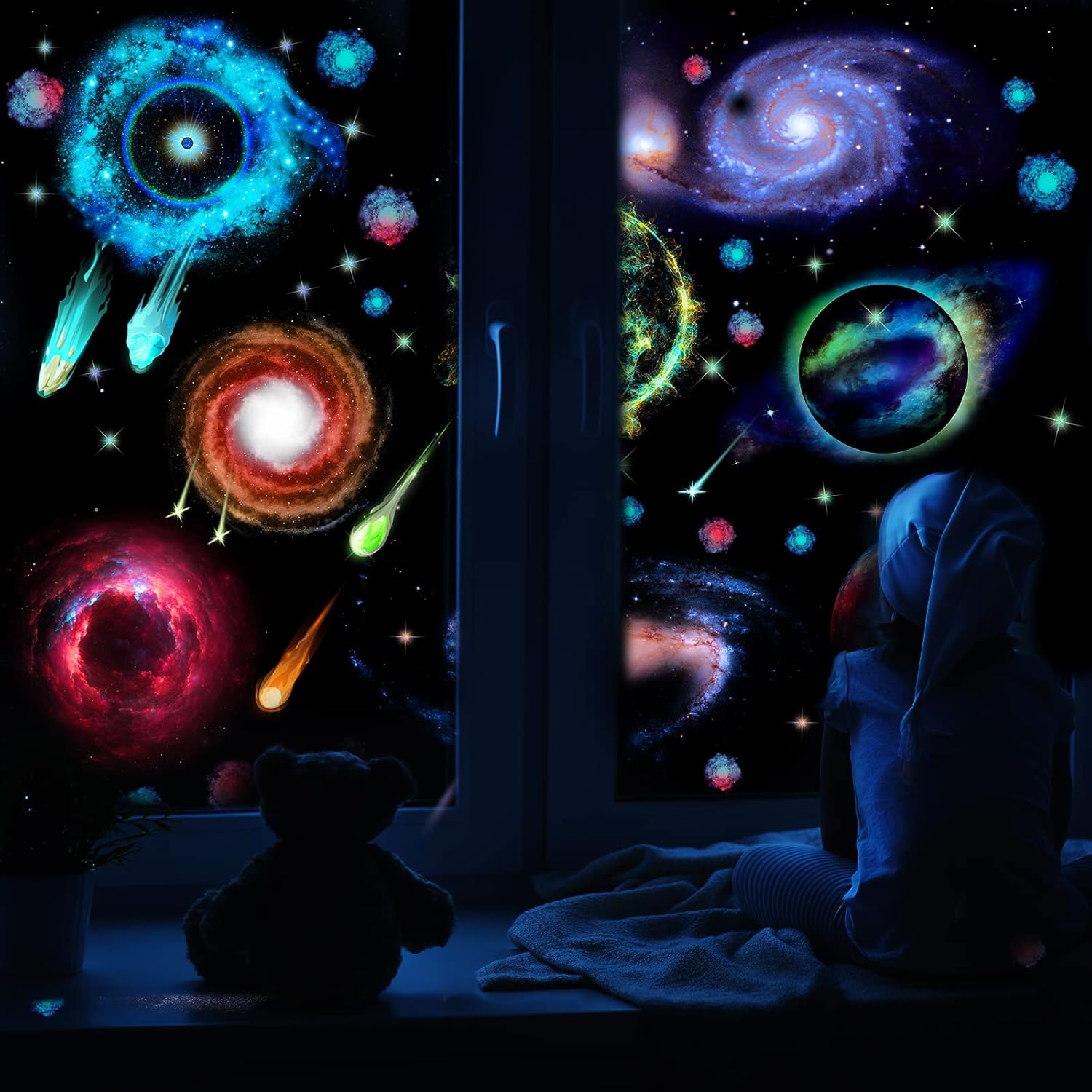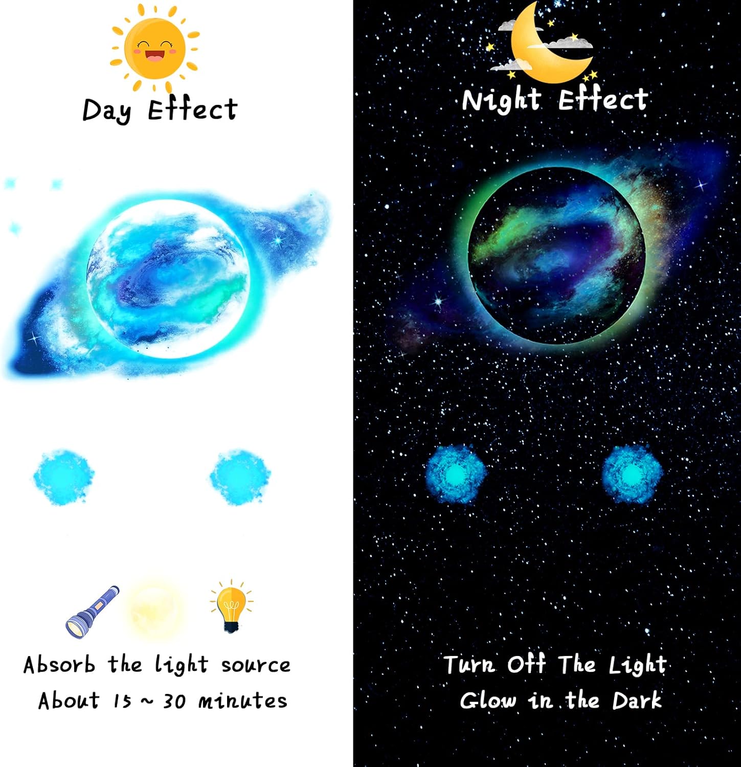 - Glow in the dark: after absorbing the light for 15-30 minutes, these glow in the dark star decals would shine in the darkness automatically, light your universe and let your immerse in the quiet and ease atmosphere; Nice tools to lull children to fall asleep