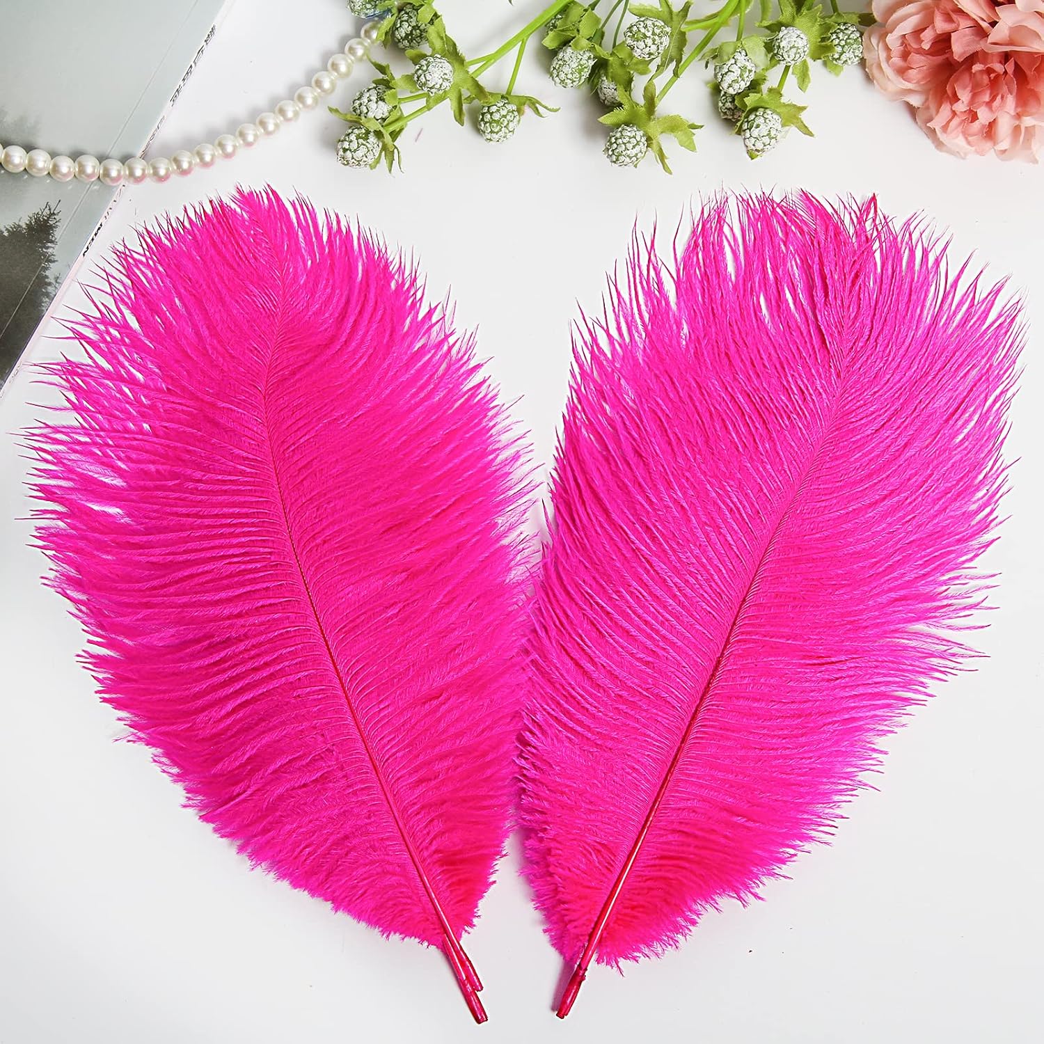 THARAHT Hot Pink Ostrich Feathers 24pcs Natural Bulk 10-12Inch 25cm-30cm for Crafts Wedding Party Centerpieces Easter Gatsbi and Home Decoration Feathers