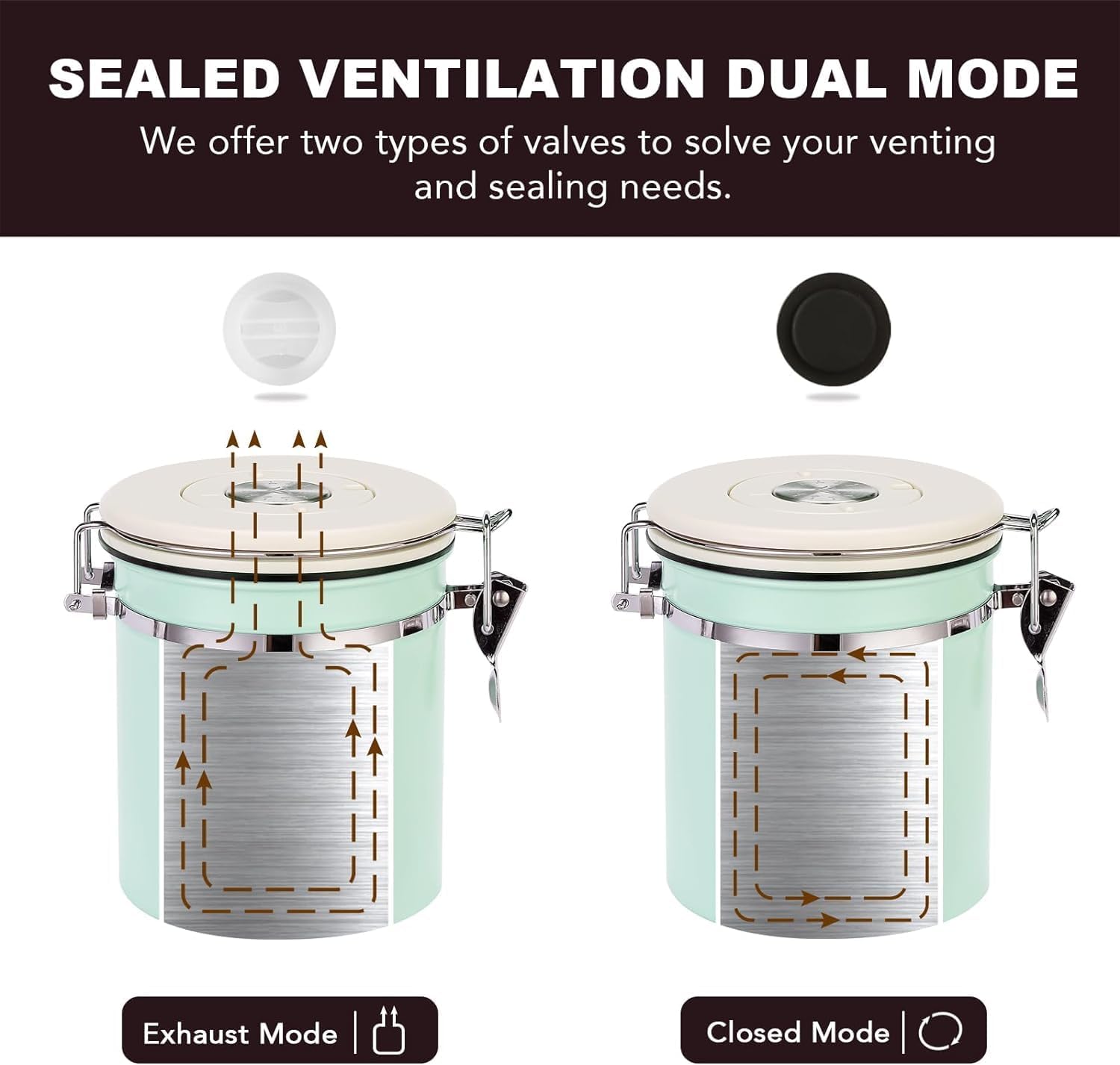 - 【TWO EXHAUST MODES】The canister features a CO₂ valve system and a silicone seal to lock in freshness and keep out moisture and air. A silicone gasket around the edge of the lid ensures an airtight seal when the lid is closed. Storing your coffee beans in this well-designed canister helps extend their freshness and ensures that every cup, even weeks later, tastes as good as the first.