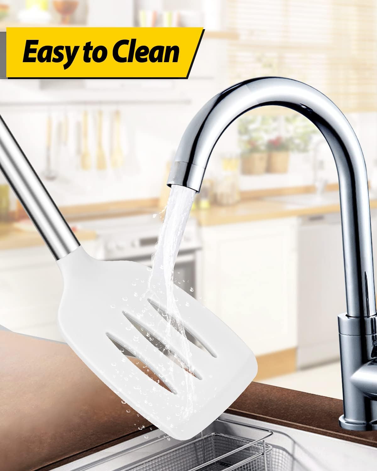 - Thoughtful Design : The good-quality 18/8 stainless steel keeps you away from the trouble of kitchen utensils rusting or breaking; This anti-scald silicone handle is not easy to conduct heat and is more comfortable to hold than traditional utensils