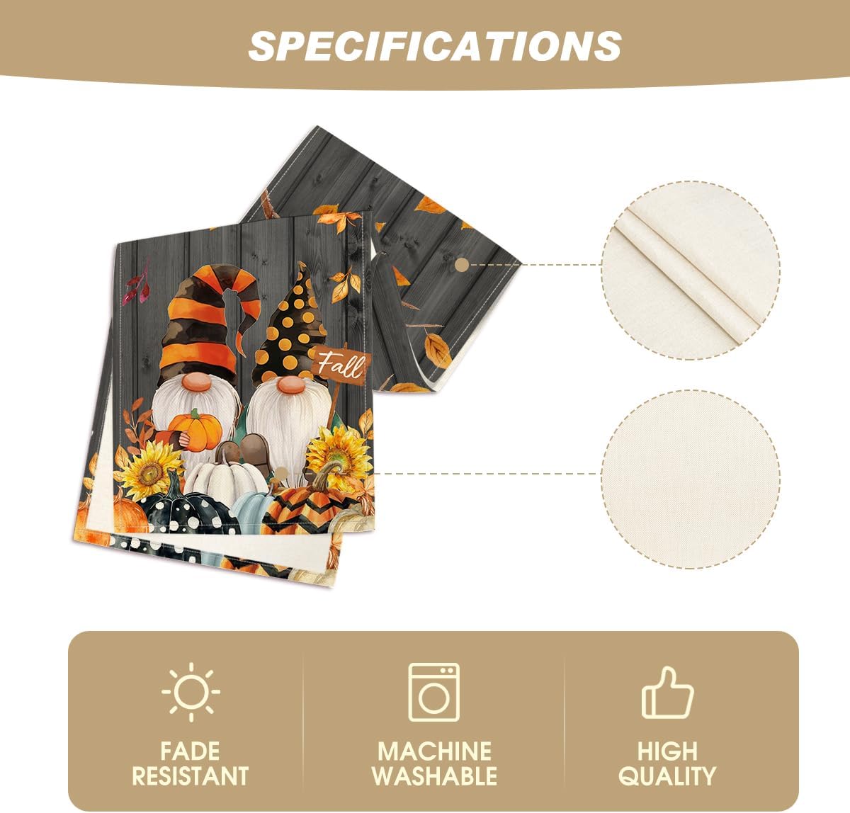 - Easy to Clean : Machine wash and lay the table runner flat to dry. Stays the same and as new after every wash. Material: 100% Polyester, no shrink, no fading. Imported, Country of origin: China