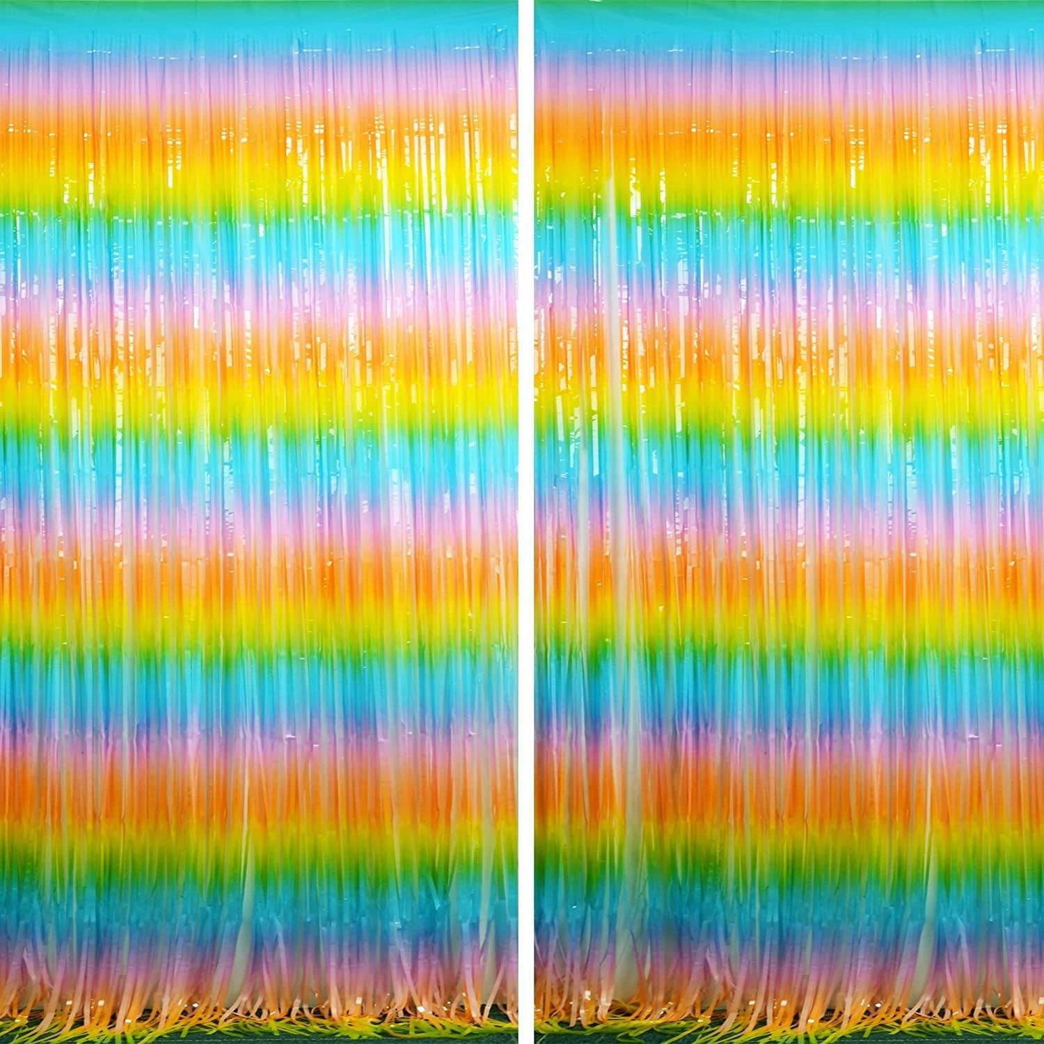 BRAVESHINE Colourful Tinsel Foil Fringe Curtains - 2Pcs 3.2x8.2ft Holidays Photo Booths Party Streamers Backdrop for Easter Princess Pastel Unicorn Birthdays Christmas Bridal Shower Party Decorations