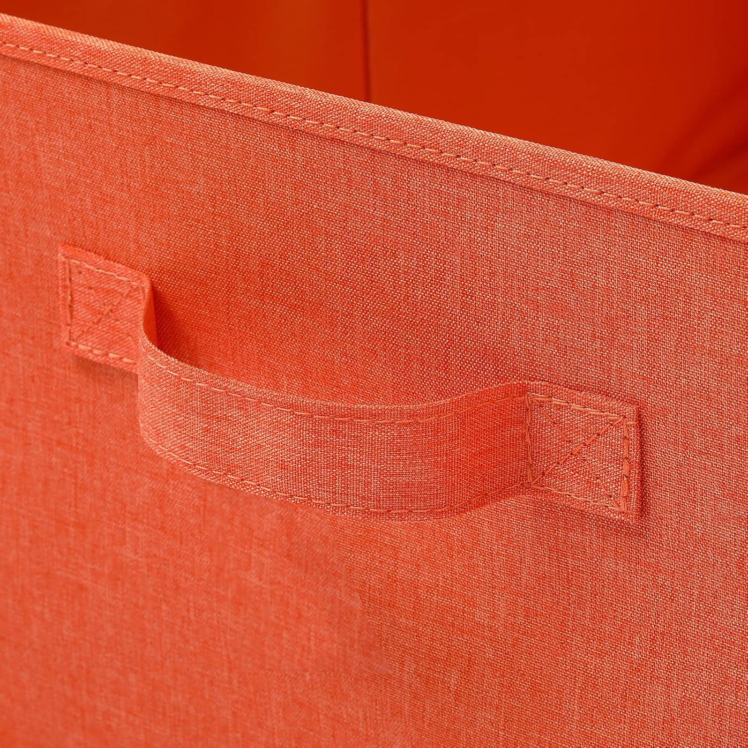 - DURABLE DOUBLE-SIDED HANDLES --- These storage boxes feature reinforced double-sided handles with firm stitching to let you move these containers effortlessly. Wherever you place them, in the closet, under the bed, or on the shelf, there is no worry to move them with containing items inside.