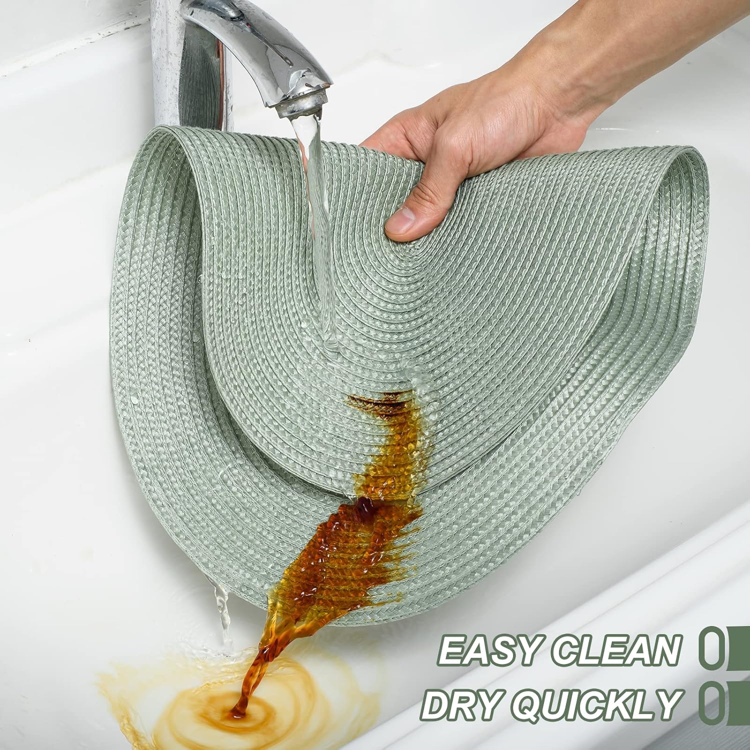 - Material: Crafted from 100% durable polypropylene, these hand-braided mats resist stains and maintain shape through repeated use. Ideal for daily meals or special occasions.