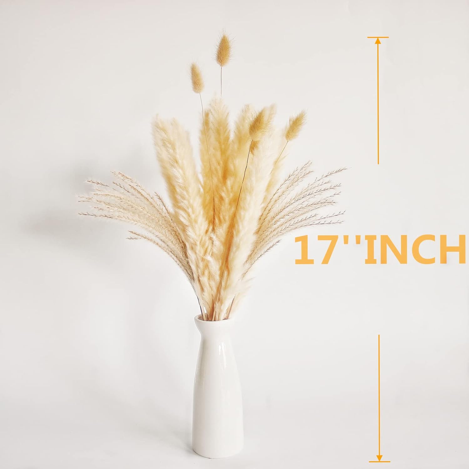 - Elegant accent: cream pampas grass about 17 inches in height, suitable for small and medium-sized pampas grass vase, fall vase filler have natural color overall elegance Smooth, warm color palette has an autumnal atmosphere, pleasant boho party decor style suitable for boho wedding table decor center party living room bedroom kitchen vintage country farmhouse, etc.