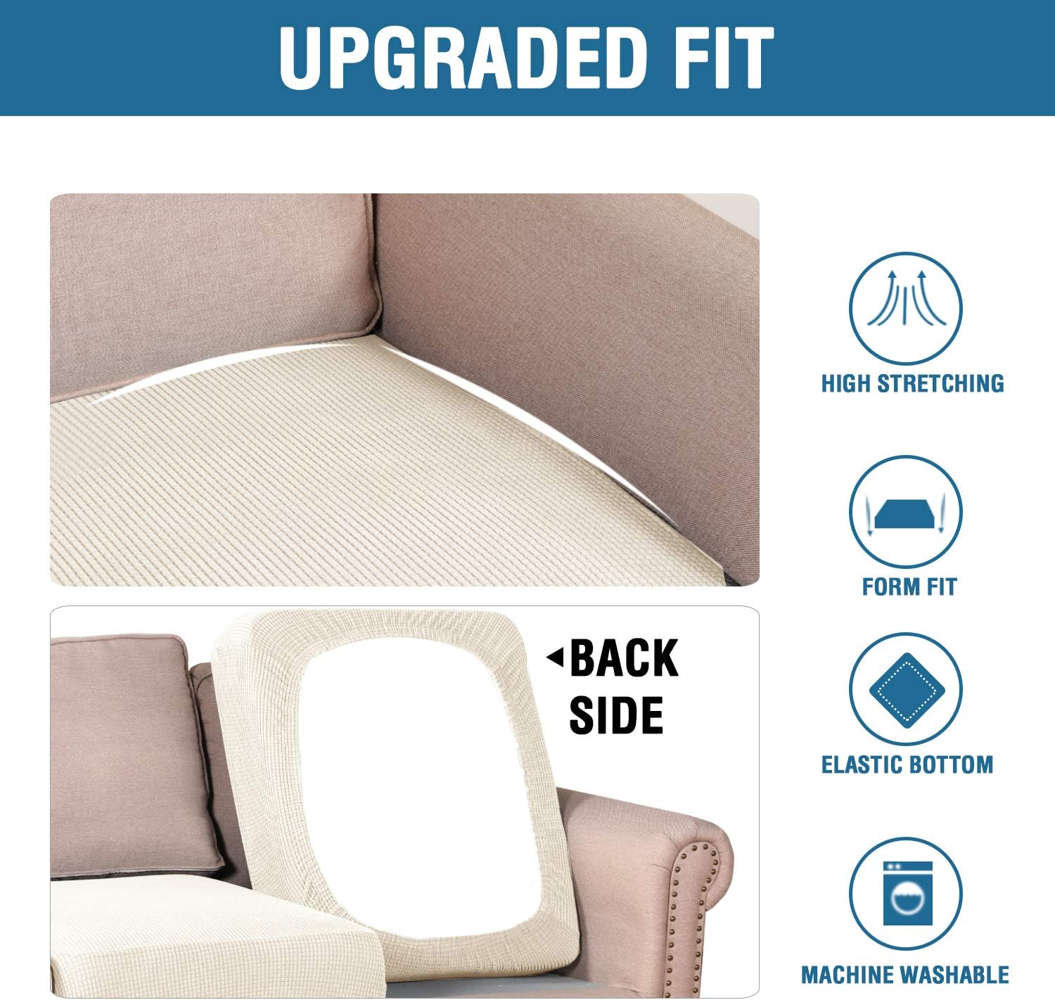 H.VERSAILTEX Super Stretch Individual Seat Sofa Covers Couch Slipcover Sets Thick Jacquard Textured Twill Fabric (3 Piece XL Sofa Cushion Covers, Natural)