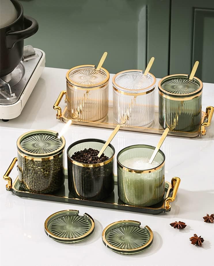 - ▲▲【Material】: Transparent thickened acrylic condiment container, made of PP plastic, equipped with 3 metal spoons and a practical tray with a handle, sturdy and corrosion-resistant, it can be effectively stored while decorating home life, adding color.