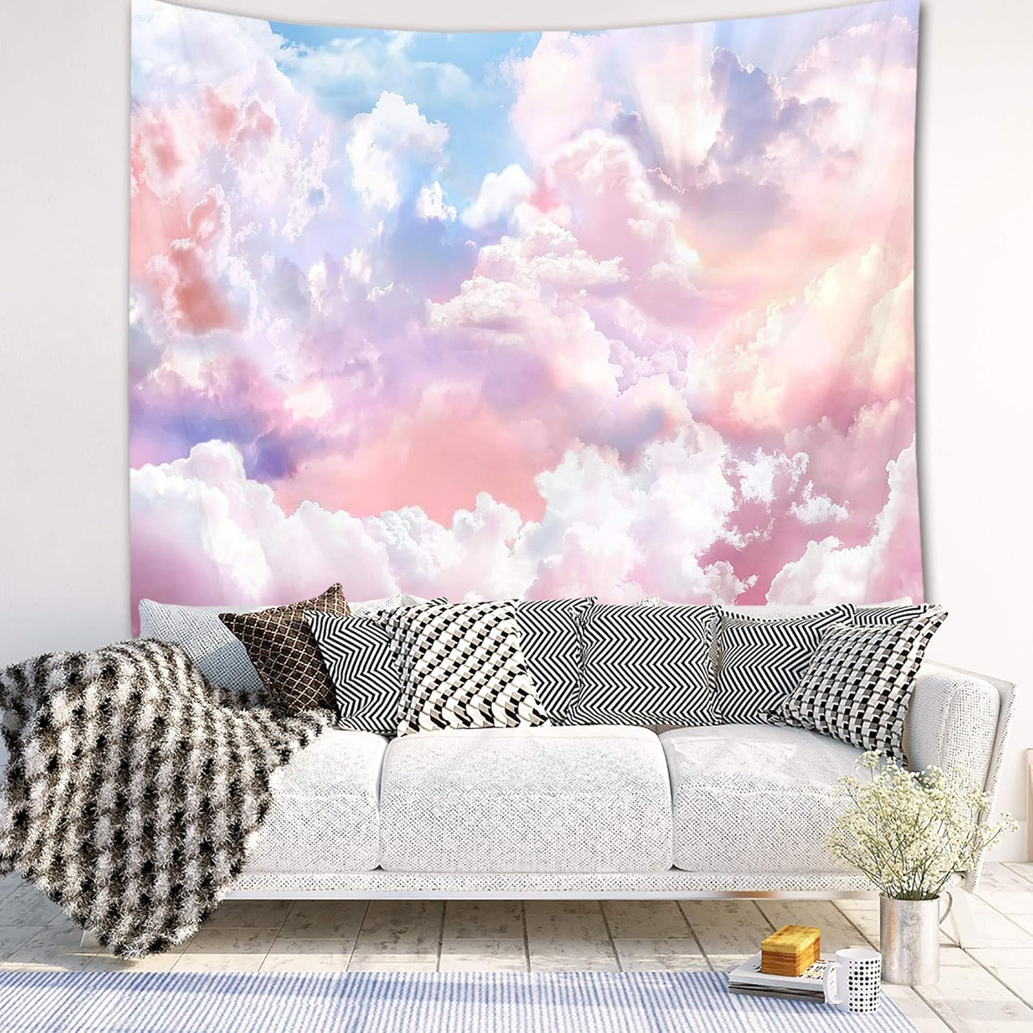 - DESIGN: This Pink dreamy clouds tapestry adopt HD digital printing, Don’t worry about fading, more clear, vivid colors, vibrant colorful design will light up your room, give you a happy mood!