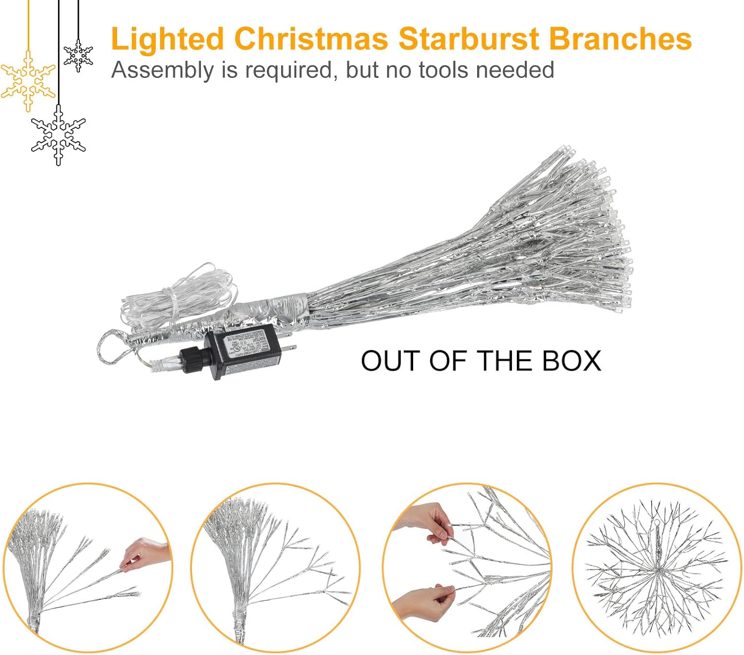 Christmas led Sparkle Ball Hanging Outdoor décorations -Haning Twig Ball,Snowflake Ornament Lights Indoor Outdoor Festive Holiday Décor 24Inch (Mutilcolor)