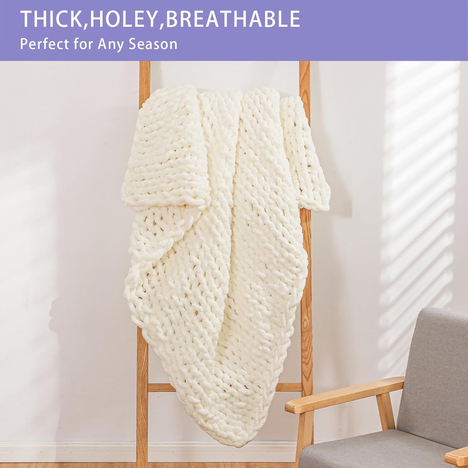 - Holey Chunky Knit Blanket: Our chunky throw blanket is 100% hand knit with cute holes, the special holey feature and classtic pattern make this plush blanket a great art décor throw blanket for couch, bed and sofa, bringing you warmth without overheating