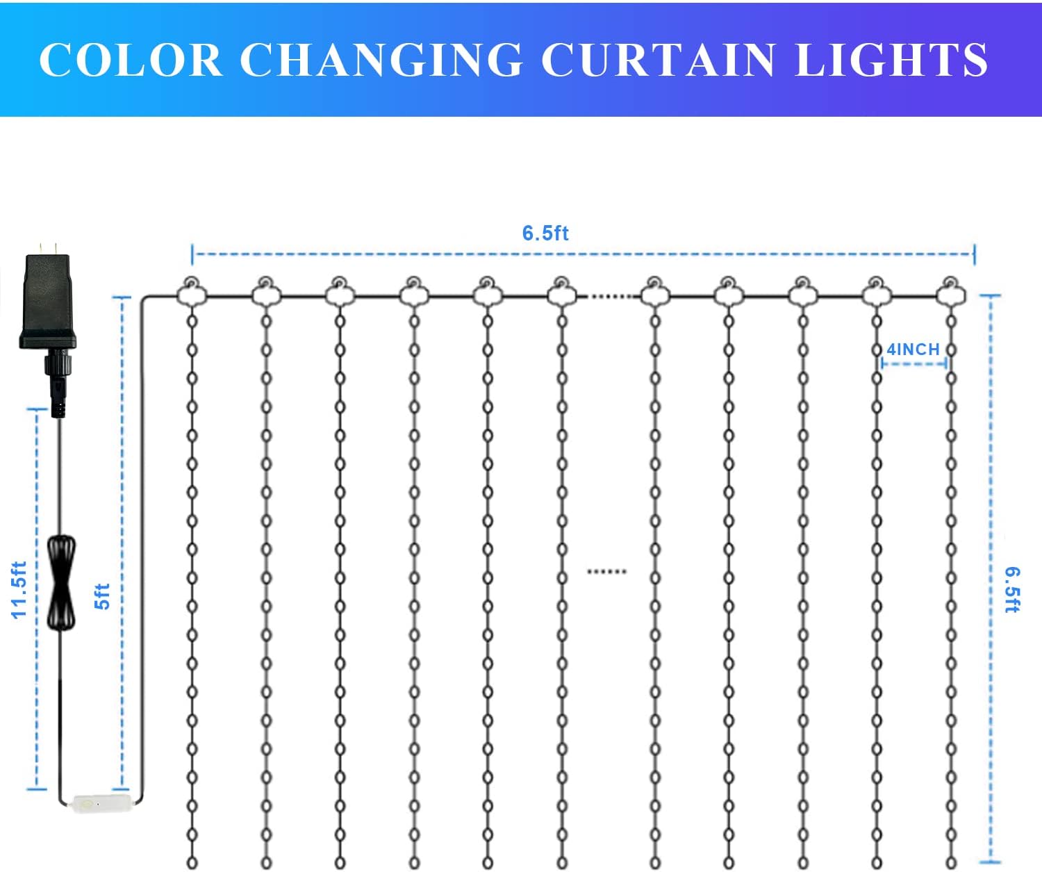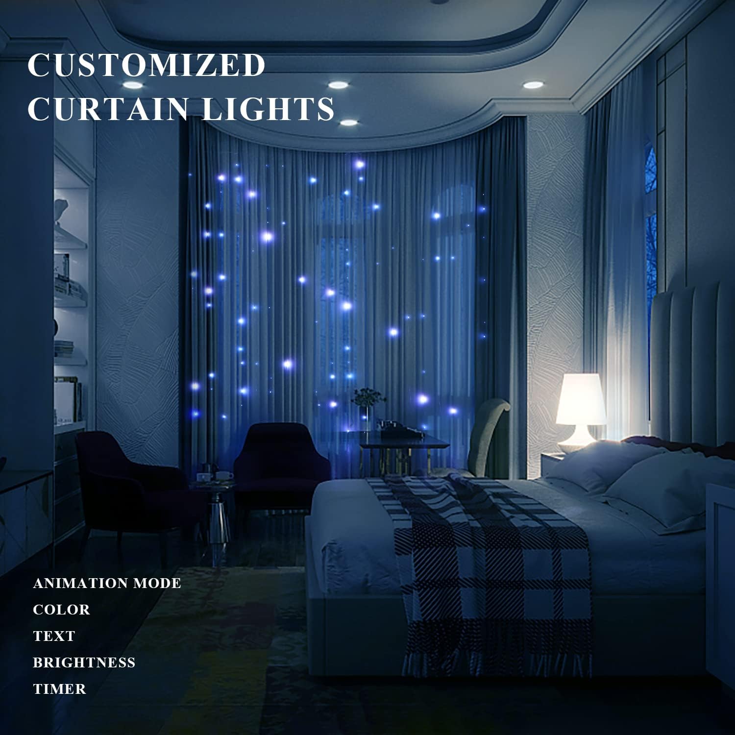 - Bluetooth App Control Curtain Lights- 400 LED curtain light supports app control. Download and use the SuperPix App for iOS and Android to map the string lights and create a custom light display by connecting to Bluetooth, and Bluetooth ranges up to 50 ft. Differing from being controlled in another way, our lights can avoid experiencing a bad signal. To avoid the color clutter and lights flickering bringing visual distress, the light mode is the most classic - stay on mode.