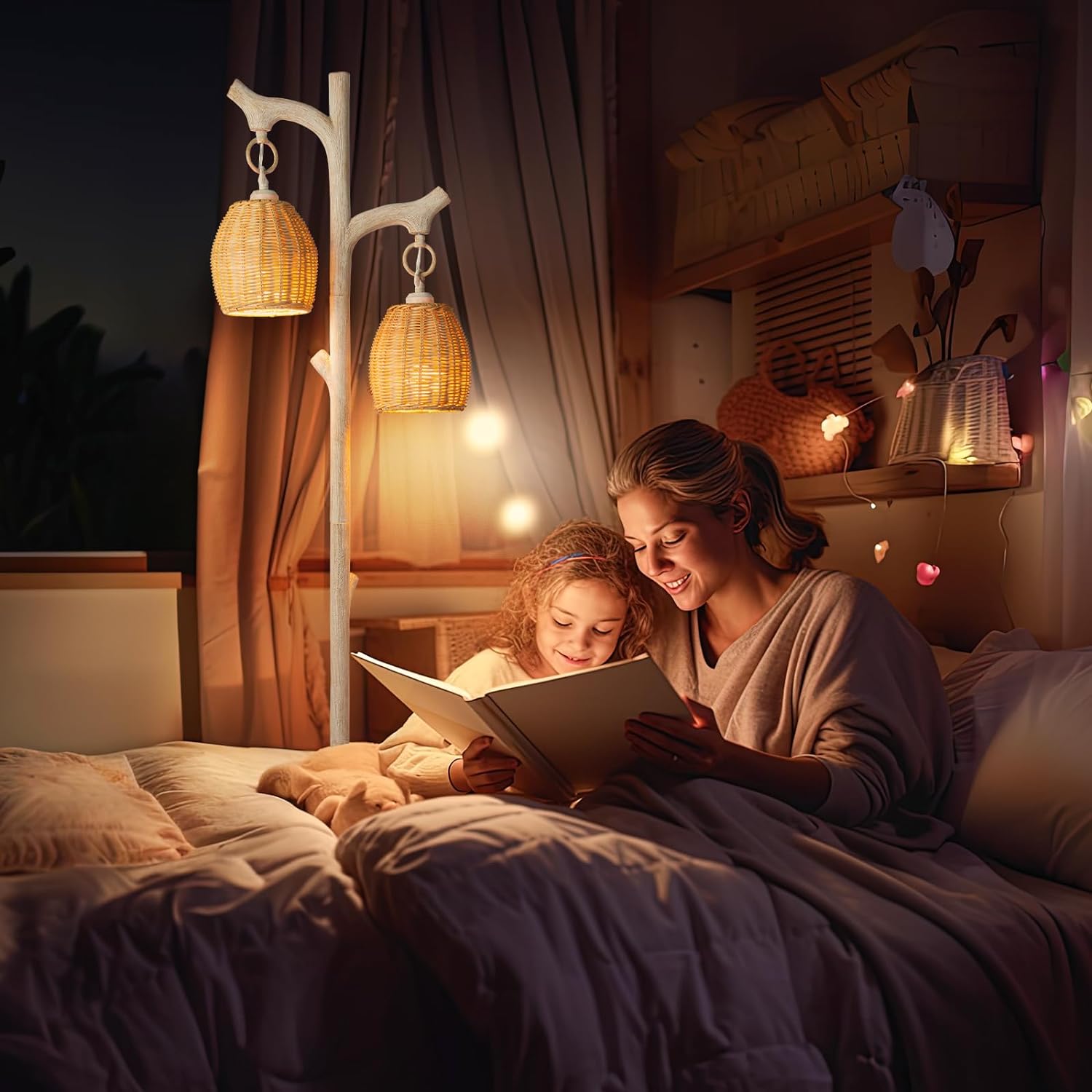 - two wicker drum shade strip lamp body light sources are suspended from the classic and elegant tree-shaped main light stand, when you are relaxing on sofas, chaise long use and reading chairs, you will feel like you are in a natural tree Underneath, enjoy the serenity of nature, in addition to bright, high-intensity task lighting, it also provides warm light without taking up too much space, ideal for small rooms such as children's rooms, guest rooms, offices, etc.