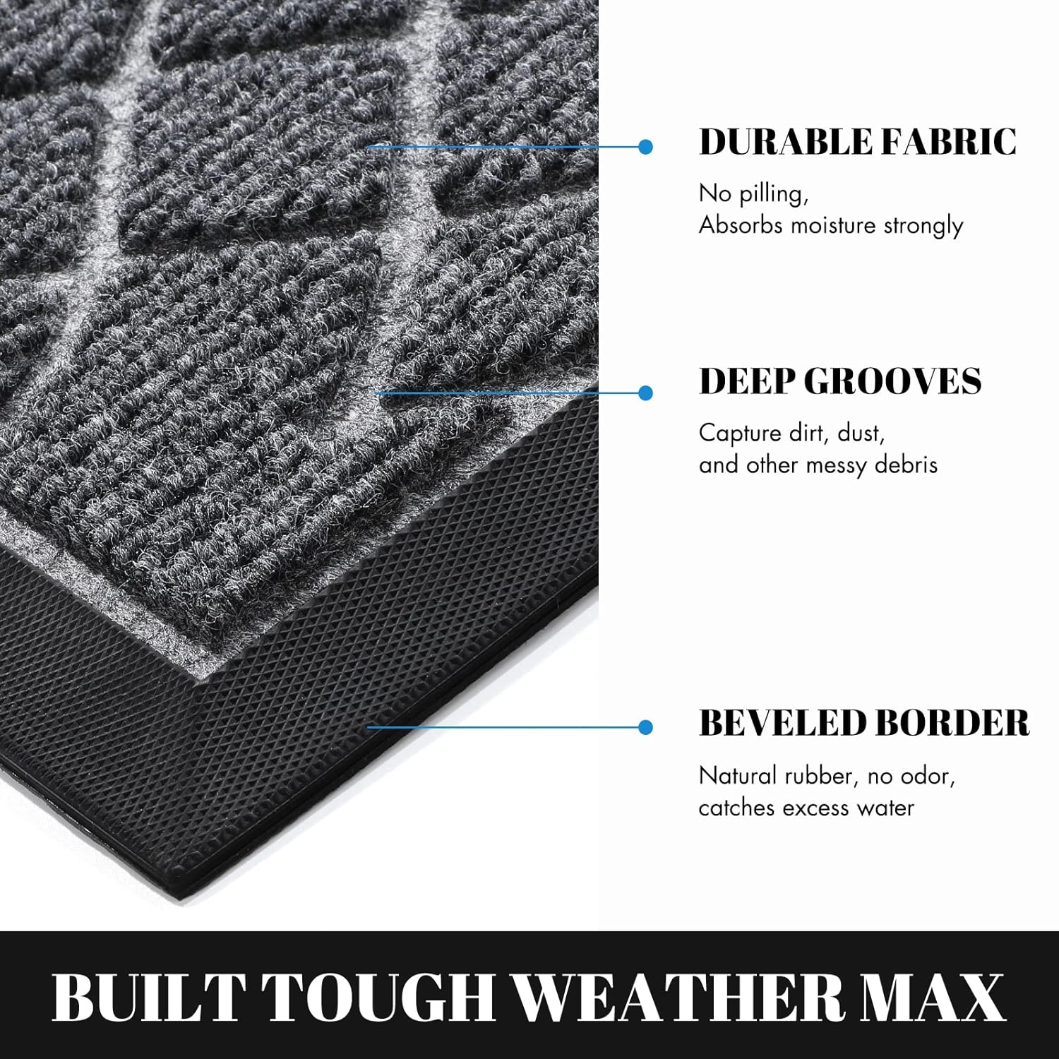 Yimobra Front Door Mat Outdoor Indoor 36x24, All-Season, All-Weather, Heavy Duty Welcome Door Mats Outside Entrance, Non Slip Porch Patio Entrance Mat, Black Gray