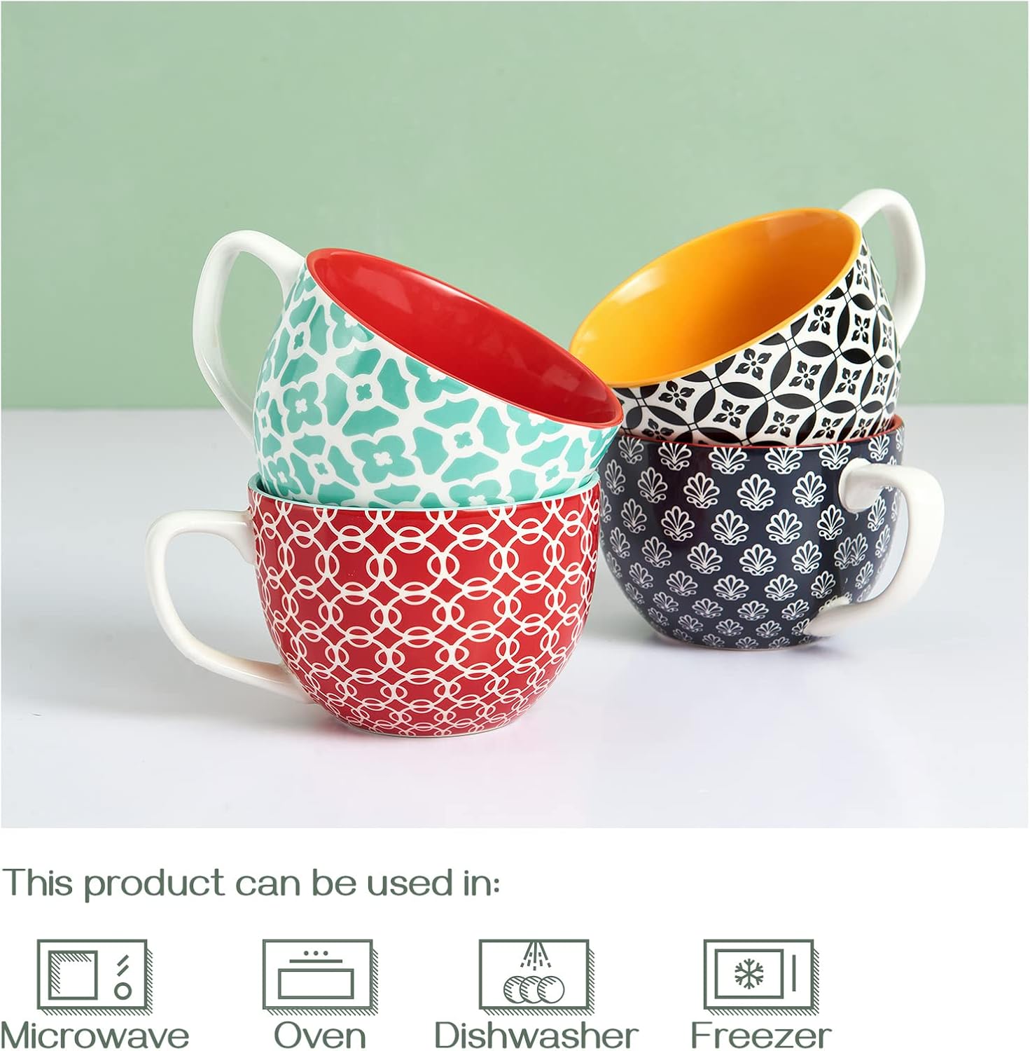 DOWAN Coffee Mugs Set of 4, 24 oz Large Coffee Mugs, Jumbo Soup Mugs With Handles, Ceramic Coffee Cups for Coffee Cereal Latte for Men Women, Housewarming Wedding Gift, Vibrant Colors