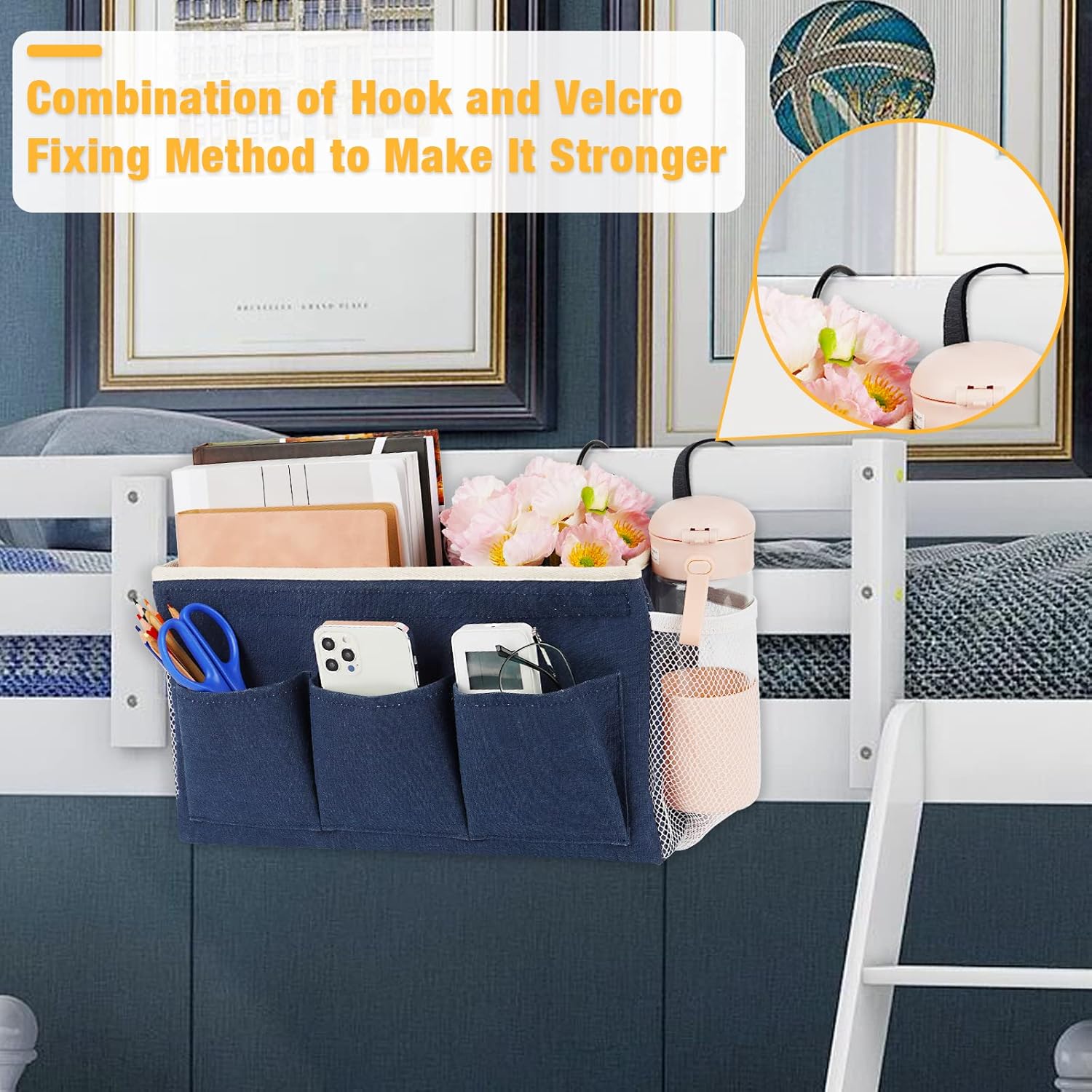 - 【Wide Application】Keep your items close to you for convenient access. The bunk bed storage caddy stores all your belongings together, such as laptop, mobile phones, books, water bottles, data cables, etc; Suitable for home school dorm bunk beds, hospital bed rails, crib rails or camping.