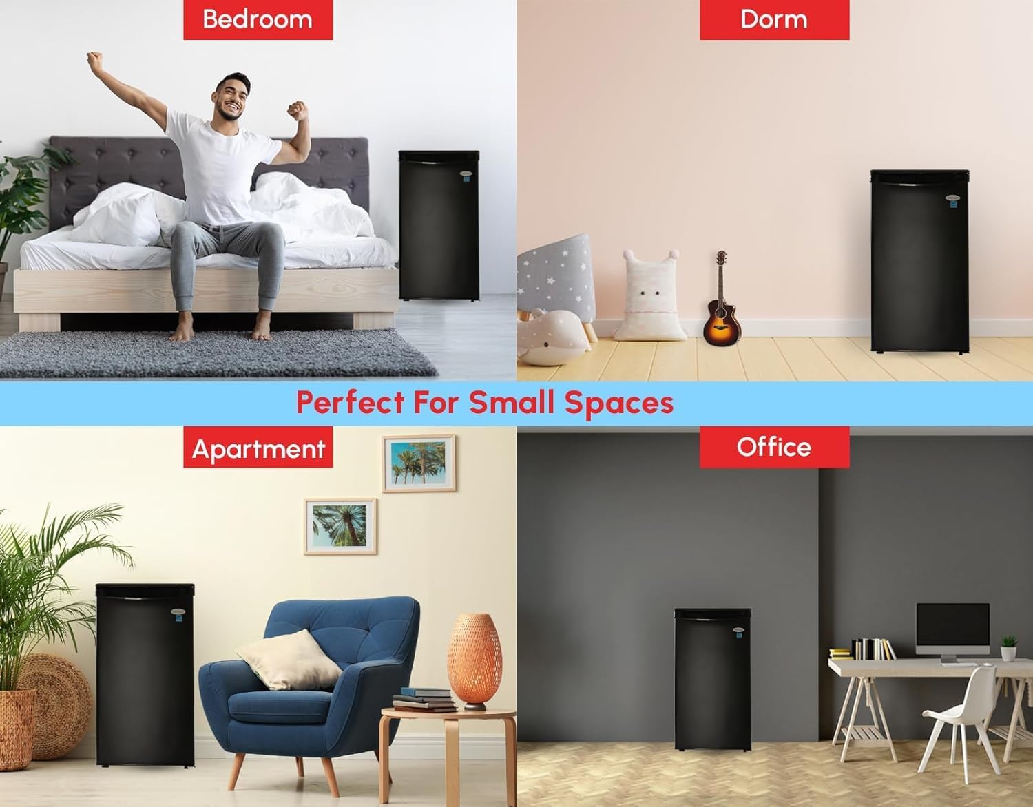 - Space Saver - Its compact enough to fit in any small space in an Apartment, Dorm, Office, Hotel Room, Garage, Kitchen, School, Pantry by using reversible door option through which you can change opening direction towards right or left depending on your needs and room layout. Flat back design is value added feature means it doesnot have any exposed components which makes it easy to fit in any small area.