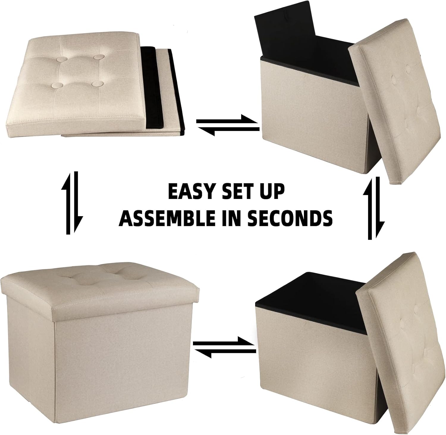 - [Easy to assemble and to fold] Our storage ottoman is very easy to set up, without any tools. Unfold the panel, place the base into the bottom, finally put the lid on, then you can make it complete! Also, you can fold it up when you don’t need it.