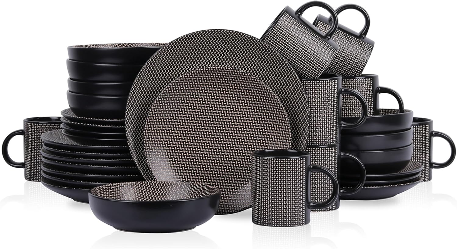 - STYLISH DESIGN: Daisy features a unique hashmark design in black with either a white or brown base color, making this dinnerware set an understated, versatile addition to your dining room.