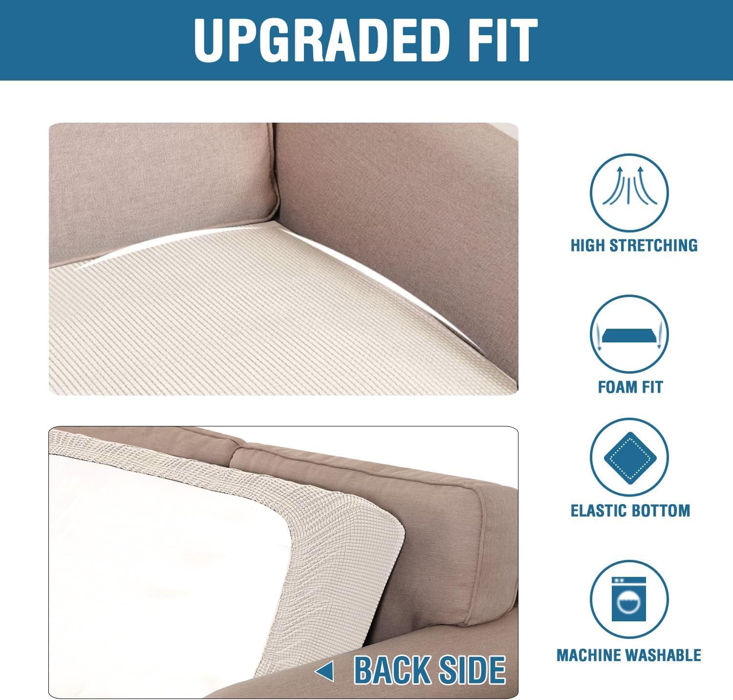 H.VERSAILTEX Super Stretch Individual Seat Cushion Covers - Sofa & Couch Cushion Slipcover Sets - Thick Jacquard Textured Twill Fabric (3 Piece XL, Ivory)